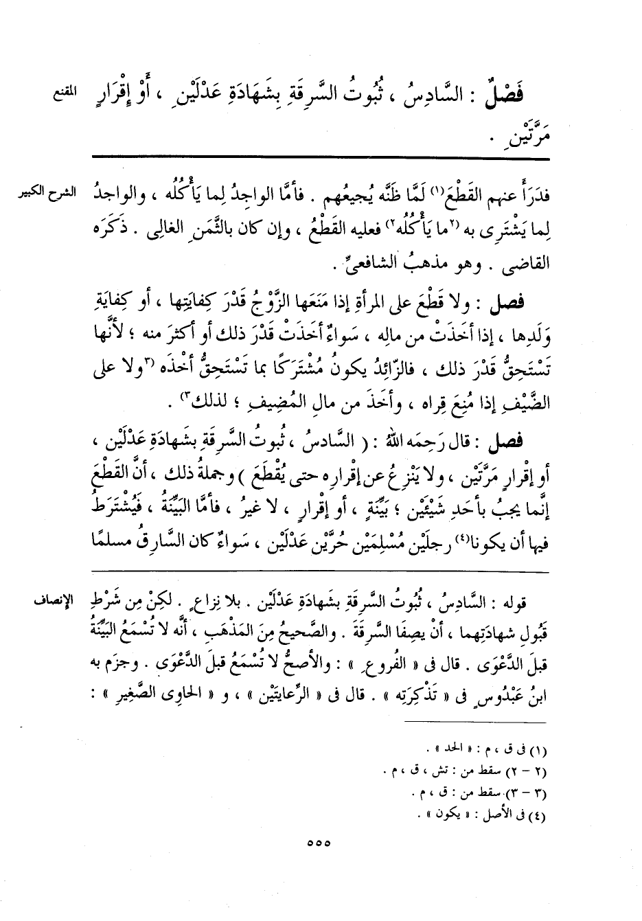 فَصْلٌ: السَّادِسُ، ثُبُوتُ السَّرِقَةِ بِشَهَادَةِ عَدْلَيْنِ، أَوْ إِقْرَارٍ مَرَّتَيْنِ.