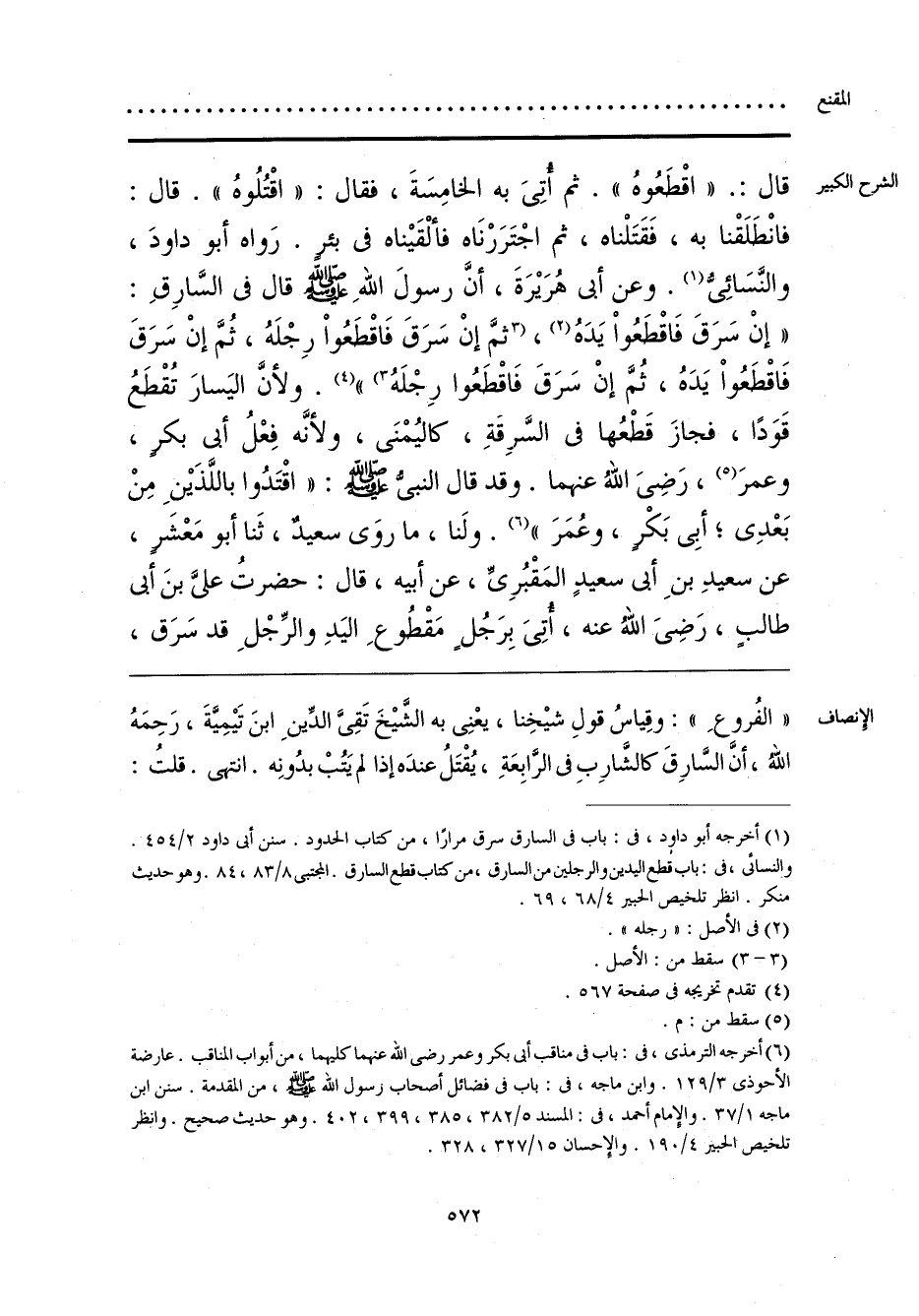 «الفُروعِ»: وقِياسُ قولِ شيْخِنا، يعْنِى به الشَّيْخَ تَقِىَّ الدِّينِ ابنَ تَيْمِيَّةَ، رَحِمَهُ اللَّهُ، أنَّ السَّارِقَ كالشَّارِبِ فى الرَّابِعَةِ، يُقْتَلُ عندَه إذا لم يَتُبْ بدُونِه. انتهى. قلتُ: