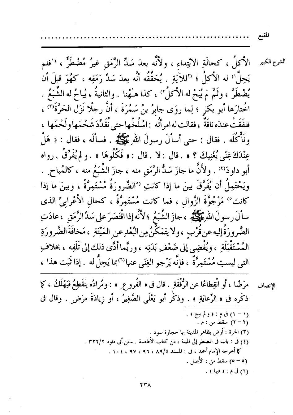 مرَضًا، أو انْقِطاعًا عن الرُّفْقَةِ. قال في «الفُروعِ»: ومُرادُه ينقَطِعُ فيَهْلَكُ، كما ذكَره في «الرِّعايَةِ». وذكَر أبو يَعْلَى الصَّغِيرُ، أو زِيادَةَ مرَضٍ. وقال في
