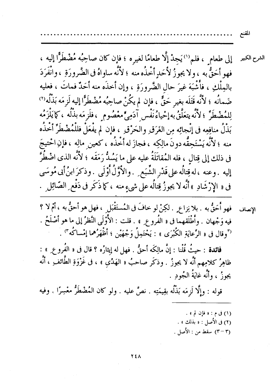 فائدة: حيثُ قُلْنا: إنَّ مالِكَه أحقُّ. فهل له إيِثارُه؟ قال في «الفُروعِ»: ظاهِرُ كلامِهم أنَّه لا يجوزُ. وذكَر صاحبُ «الهَدْي»، في غَزْوَةِ الطَّائفِ، أنَّه يجوزُ، وأنَّه غايَةُ الجُودِ.