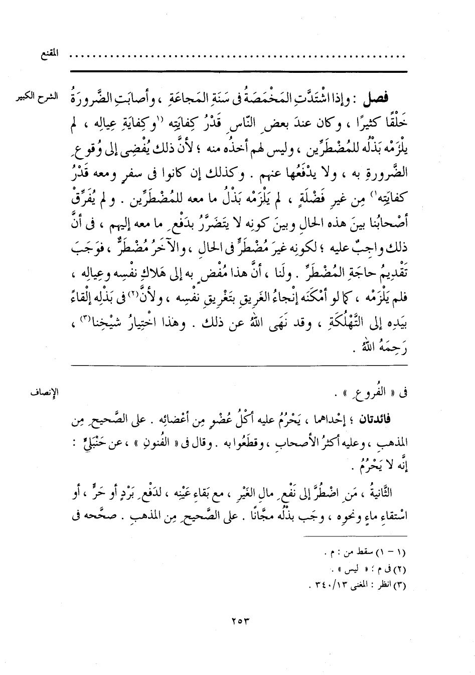 الثَّانيةُ، مَنِ اضْطُرَّ إلى نَفْعِ مالِ الغَيرِ، مع بَقاءِ عَينِه، لدَفْعِ بَرْدٍ أو حَرٍّ، أو اسْتقاءِ ماءٍ ونحوه، وجَب بذْلُه مجَّانًا. على الصَّحيحِ مِن المذهبِ. صحَّحه في