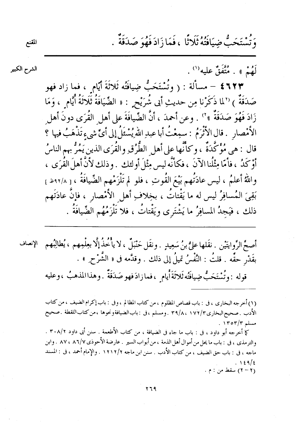 قوله: وتُسْتَحَبُّ ضِيافَتُه ثَلاثَةَ أَيامٍ، فما زادَ فهو صَدَقَةٌ. وهذا المذهبُ، وعليه