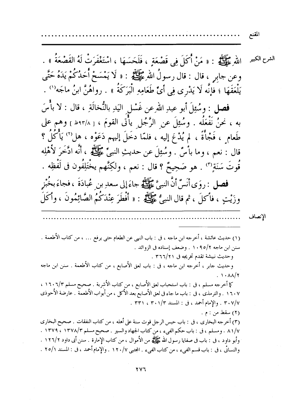 اللهِ - صلى الله عليه وسلم -: «مَنْ أَكَلَ فِي قَصْعَةٍ، فَلَحَسَهَا، اسْتَغْفَرَتْ لَهُ القَصْعَةُ». وعن جابرٍ، قال: قال رسولُ اللهِ - صلى الله عليه وسلم -: «لَا يَمْسَحْ أحَدُكُمْ يَدَهُ حَتَّى يَلْعَقَهَا؛ فإنَّه لَا يَدْرِي فِي أيِّ طَعَامِهِ الْبَرَكَةُ». رواهُنَّ ابنُ ماجَه (¬1).