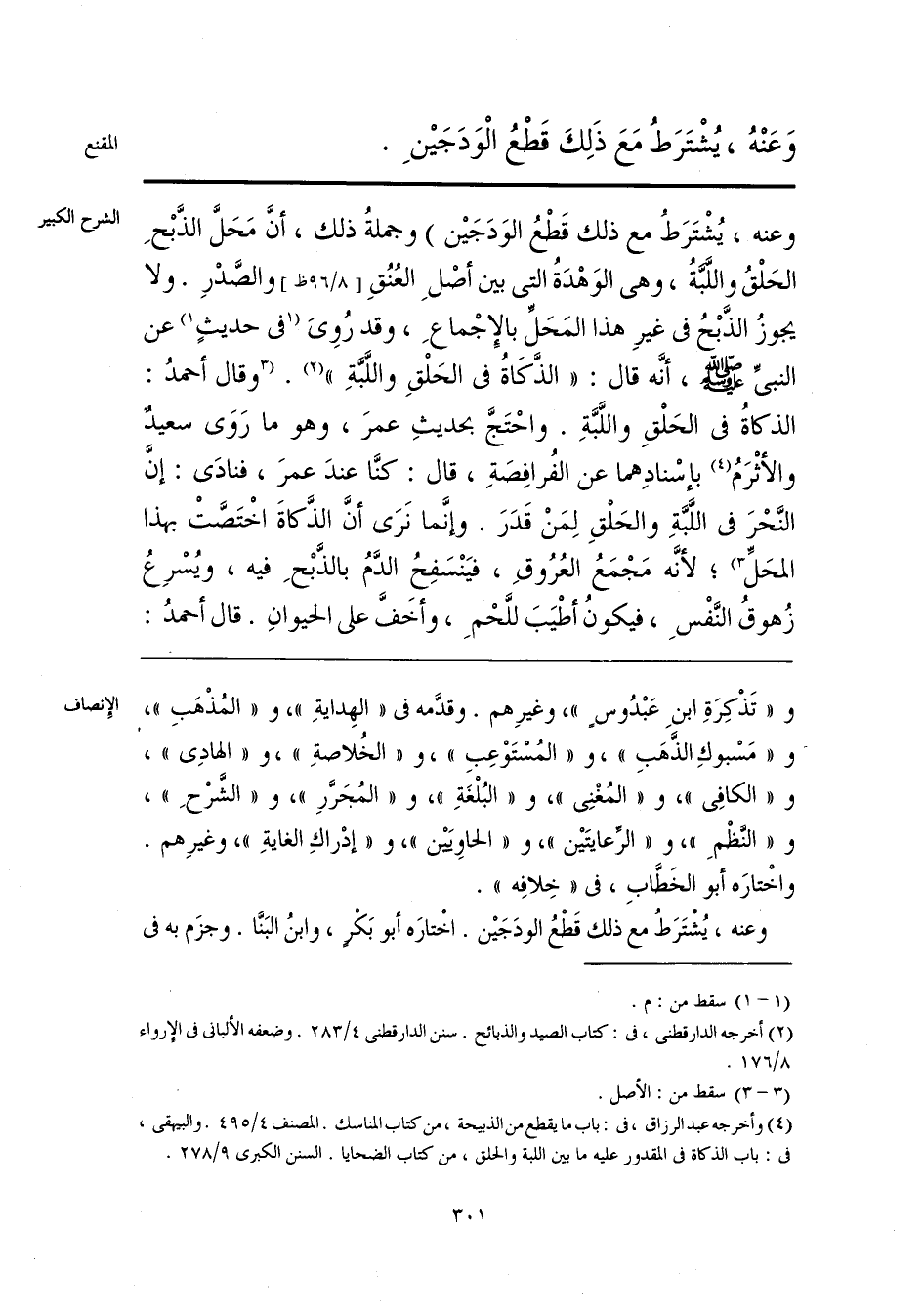 وعنه، يُشْتَرَطُ مع ذلك قَطْعُ الودَجَين. اخْتارَه أبو بَكْرٍ، وابنُ البَنَّا. وجزَم به في