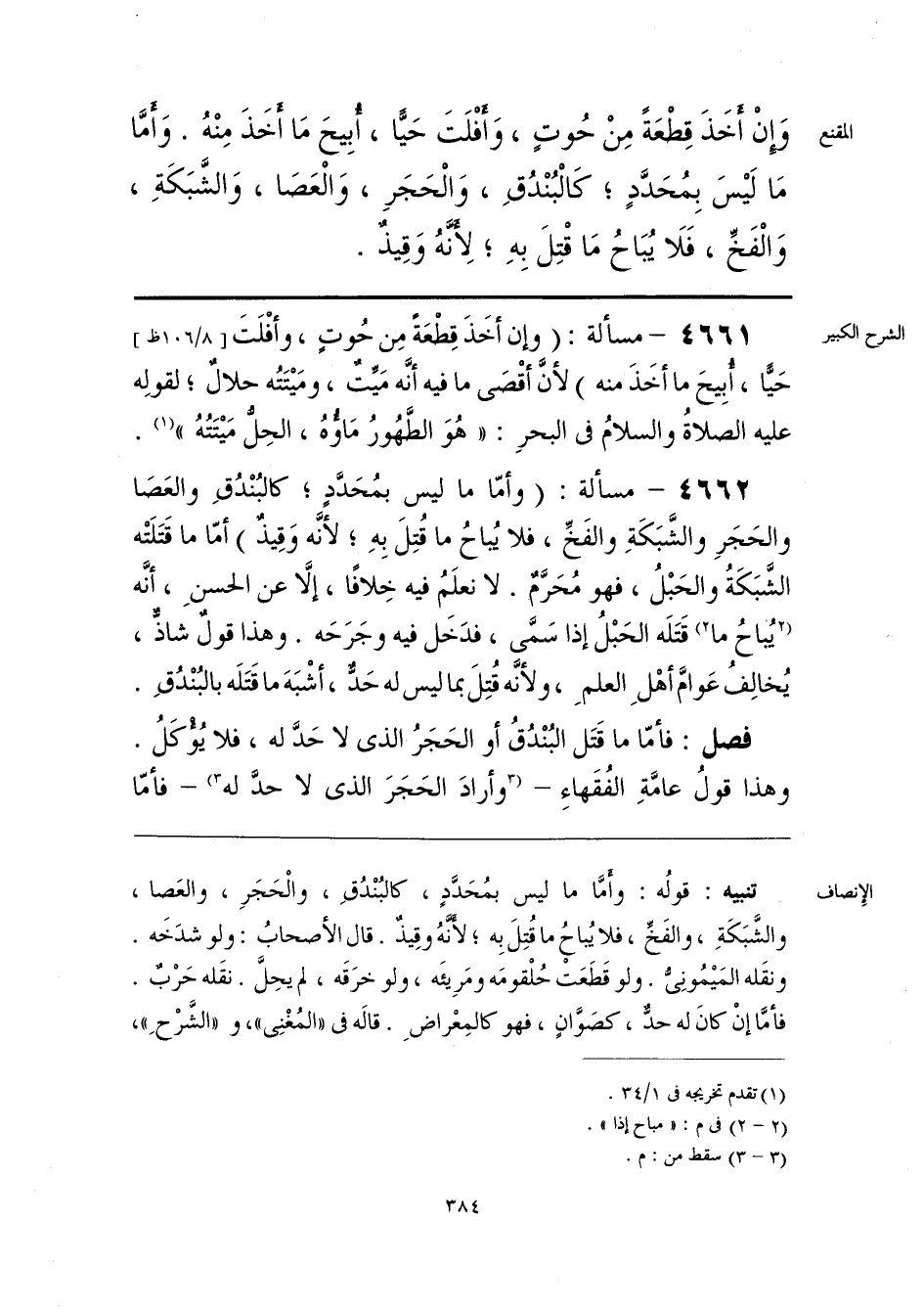 تنبيه. قولُه: وأمَّا ما ليس بمُحَدَّدٍ، كالبُنْدُقِ، والْحَجَرِ، والعَصا، والشَّبَكَةِ، والفَخِّ، فلا يُباحُ ما قُتِلَ بِه، لأَنَّهُ وقِيذٌ. قال الأصحابُ: ولو شدَخَه. ونقَله المَيمُونِيُّ. ولو قَطَعَتْ حُلْقومَه ومَرِيئَه، ولو خرَقَه، لم يحِلَّ. نقَله حَرْبٌ. فأمَّا إنْ كانَ له حدٌّ، كصَوَّانٍ، فهو كالمِعْراضِ. قاله في «المُغْنِي»، و «الشَّرْحِ»،