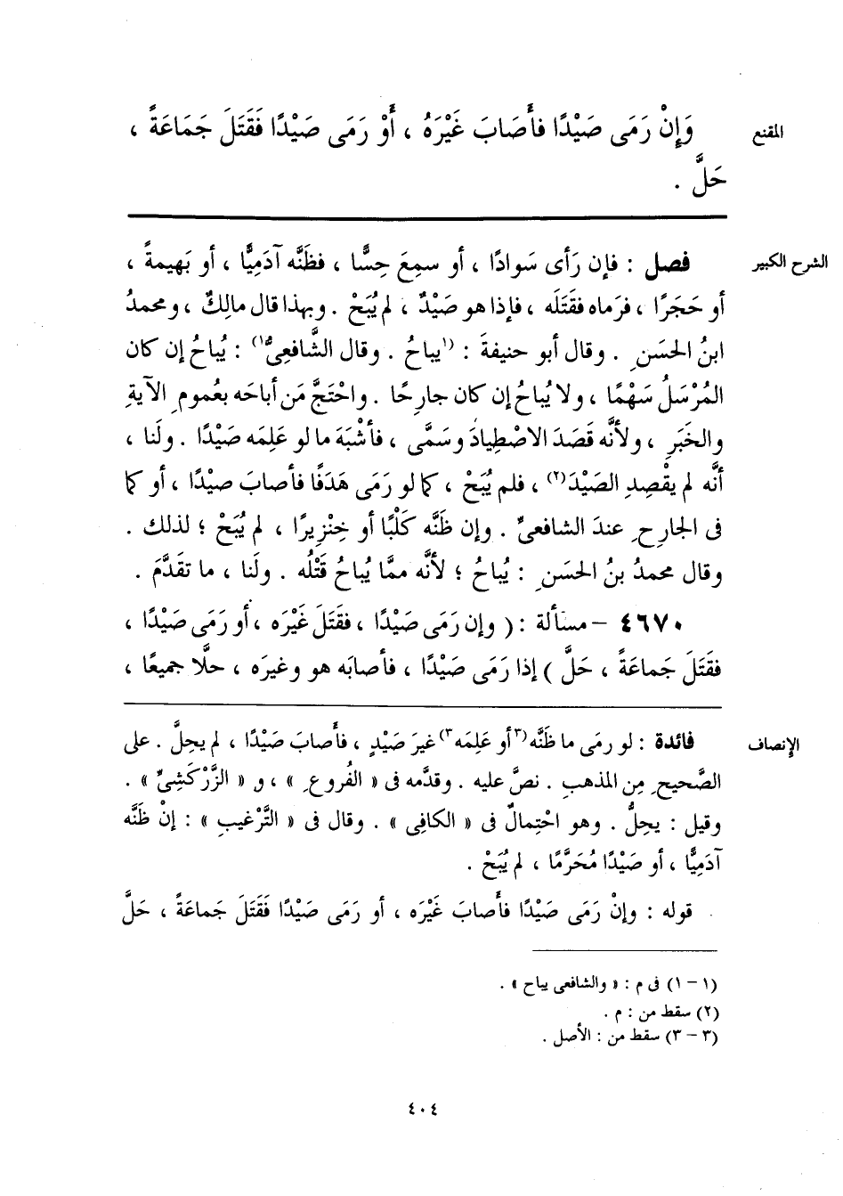 قوله: وإنْ رَمَى صَيدًا فأَصابَ غَيرَه، أو رَمَى صَيدًا فَقَتَلَ جَماعَةً، حَلَّ