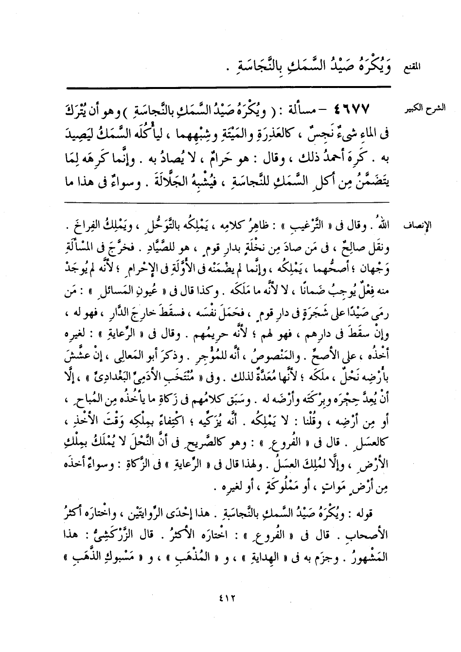 قوله: ويُكْرَهُ صَيدُ السَّمكِ بالنَّجاسَةِ. هذا إحْدَى الرِّوايتين، واخْتارَه أكثرُ الأصحابِ. قال في «الفُروعِ»: اخْتارَه الأكثرُ. قال الزَّرْكَشِيُّ: هذا المَشْهورُ. وجزَم به في «الهِدايةِ»، و «المُذْهَبِ»، و «مَسْبوكِ الذَّهَبِ»