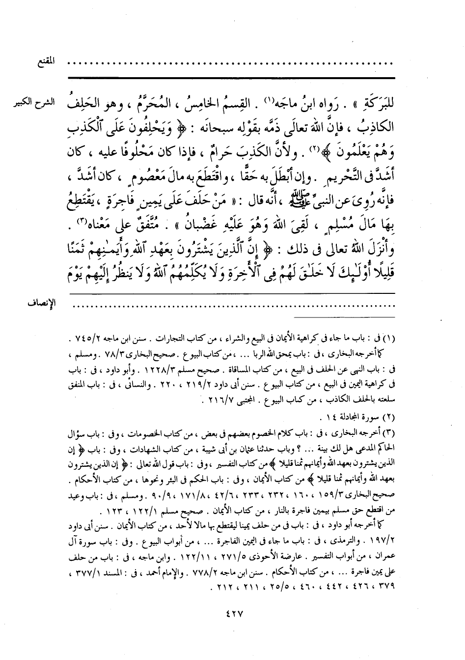 (¬3) أخرجه البخاري، في: باب كلام الخصوم بعضهم في بعض، من كتاب الخصومات، وفي: باب سؤال الحاكم المدعى هل لك بينة. . . .؟ وباب حدثنا عثمان بن أبي شيبة، من كتاب الشهادات، وفي: باب {إِنَّ الَّذِينَ يَشْتَرُونَ بِعَهْدِ اللَّهِ وَأَيمَانِهِمْ ثَمَنًا قَلِيلًا} من كتاب التفسير، وفي: باب قول الله تعالى: {إِنَّ الَّذِينَ يَشْتَرُونَ بِعَهْدِ اللَّهِ وَأَيمَانِهِمْ ثَمَنًا قَلِيلًا} من كتاب الأيمان، وفي: باب الحكم في البئر ونحوها، من كتاب الأحكام. صحيح البخاري 1/ 159، 160، 232، 233، 6/ 42، 8/ 171، 9/ 90. ومسلم، في: باب وعيد من اقتطع حق مسلم بيمين فاجرة بالنار، من كتاب الأيمان. صحيح مسلم 1/ 122، 123.