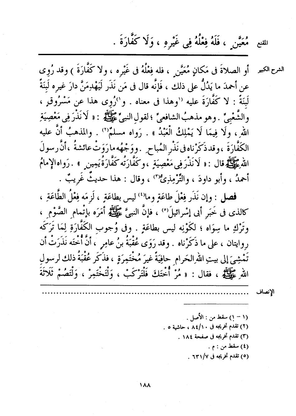 مُعَيَّنٍ، فَلَهُ فِعْلُهُ في غَيرِهِ، وَلَا كَفَّارَةَ.