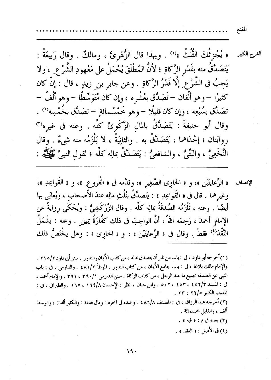 «الرِّعايتَين»، و «الحاوي الصغِيرِ»، وقدَّمه في «الفُروعِ»، و «القَواعِدِ»، وغيرِهما. قال في «القَواعِدِ»: يتَصدَّقُ بثُلُثِ مالِه عندَ الأصحابِ، ويُعايَى بها أيضًا. وعنه، تَلْزَمُه الصَّدقَةُ بمالِه كلِّه. وقال الزَّرْكَشِي: ويُحْكَى رِوايةً عن الإمام أحمدَ، رَحِمَه اللهُ، أنَّ الواجِبَ في ذلك كفَّارَةُ يمين. وعنه: يشْمَلُ النقْدَ (¬1) فقطْ: وقال في «الرِّعايتين»، و «الحاوي»: وهل يخْتَصُّ ذلك