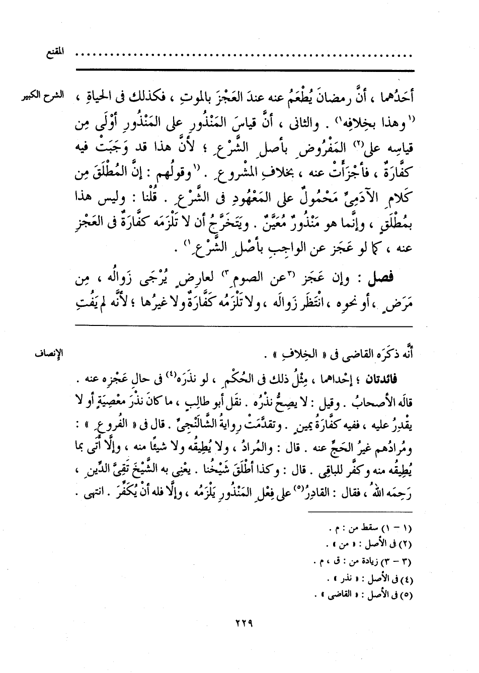 فائدتان: إحْداهما، مِثْلُ ذلك في الحُكْمِ، لو نذَرَه (¬1) في حالِ عَجْزِه عنه. قاله الأصحابُ. وقيل: لا يصِحُّ نذْرُه. نقَل أبو طالِبٍ، ما كانَ نذْرَ معْصِيَةٍ أو لا يقْدِرُ عليه، ففيه كفَّارَةُ يمين. وتقدَّمَتْ رِوايةُ الشَّالنْجِيِّ. قال في «الفُروع»: ومُرادُهم غيرُ الحَجِّ عنه. قال: والمُرادُ، ولا يُطِيقُه ولا شيئًا منه، وإلَّا أتى بما يُطِيقُه منه وكفَّر للباقِي. قال: وكذا أطْلَقَ شَيخُنا. يعْنِي به الشَّيخَ تقِيَّ الدِّينِ، رَحِمَه الله، فقال: القادِرُ (¬2) على فِعْلِ المَنْذُورِ يَلْزَمُه، وإلَّا فله أن يُكَفِّرَ. انتهى.