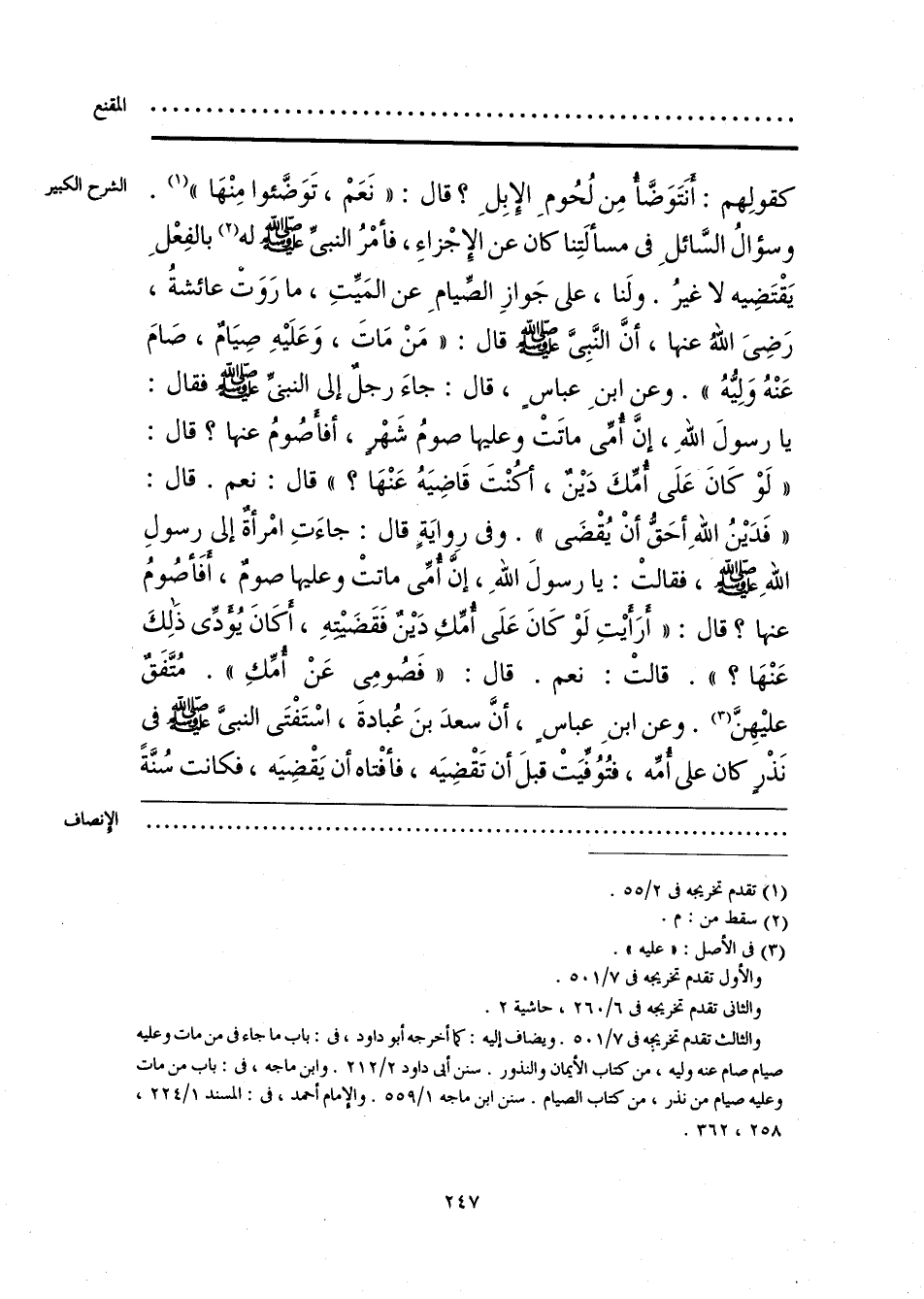 كقولِهم: أنتَوَضَّأ مِن لُحُومِ الإِبِلِ؟ قال: «نَعَمْ، تَوَضَّئوا مِنْهَا» (¬1). وسؤالُ السَّائلِ في مسألَتِنا كان عن الإِجْزاءِ، فأمْرُ النبيِّ - صلى الله عليه وسلم - له (¬2) بالفِعْلِ يَقْتَضِيه لا غيرُ. ولَنا، على جَوازِ الصِّيامِ عن المَيِّتِ، ما رَوَت عائشةُ، رَضِيَ اللهُ عنها، أنَّ النَّبِيَّ - صلى الله عليه وسلم - قال: «مَنْ مَاتَ، وَعَلَيهِ صِيَامٌ، صَامَ عَنْهُ وَلِيُّهُ». وعن ابنَ عباسٍ، قال: جاءَ رجل إلى النبي - صلى الله عليه وسلم - فقال: يا رسولَ اللهِ، إنَّ أمِّي ماتَت وعليها صومُ شَهْرٍ، أفأصُومُ عنها؟ قال: «لَوْ كَانَ عَلَى أُمِّكَ دَين، أكُنْتَ قَاضِيَهُ عَنْهَا؟» قالْ نعم. قال: «فَدَينُ اللهِ أحَقُّ أن يُقْضَى». وفي روايَةٍ قال: جاءَتِ امْرأة إلى رسولِ اللهِ - صلى الله عليه وسلم -، فقالتْ: يا رسولَ اللهِ، إنَّ أمِّي ماتت وعليها صومٌ، أفَأصُومُ عنها؟ قال: «أرَأيتِ لَوْ كَانَ عَلَى أُمِّك دَين فَقَضَيتهِ، أكَانَ يُؤدِّي ذَلِكَ عَنْهَا؟». قالتْ: نعم. قال: «فَصُومِي عَنْ أمِّكِ». مُتَّفَقٌ عليهِنَّ (¬3). وعن ابنِ عباس، أنَّ سعدَ بنَ عُبادةَ، اسْتَفْتَى النبيَّ - صلى الله عليه وسلم - في نَذْرٍ كان على أُمِّه، فتُوُفِّيَتْ قبلَ أن تَقْضِيَه، فأفْتاه أن يَقْضيَه، فكانت سُنَّةً