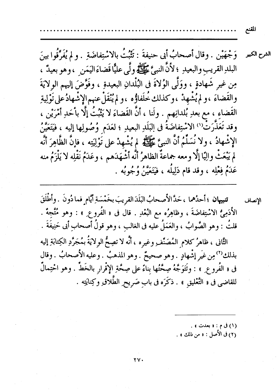 تنبيهان؛ أحدُهما، حَدَّ الأصحابُ البَلَدَ القرِيبَ بخَمْسَةِ أيَّامٍ فما دُونَ. وأطْلَقَ الأدَمِيُّ الاسْتِفاضَةَ، وظاهِرُه مع البُعْدِ. قال في «الفُروعِ»: وهو مُتَّجِهٌ. قلتُ: وهو الصَّوابُ، والعَمَلُ عليه في الغالبِ، وهو قولُ أصحابِ أبي حَنِيفَةَ.