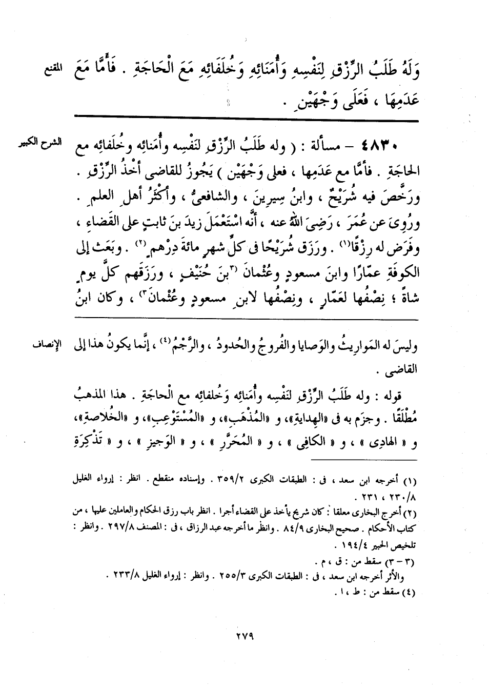 قوله: وله طَلَبُ الرِّزْقِ لنَفْسِه وأُمَنائِه وَخُلفائِه مع الْحاجَةِ. هذا المذهبُ مُطْلَقًا. وجزَم به في «الهِدايةِ»، و «المُذْهَبِ»، و «المُسْتَوْعِبِ»، و «الخُلاصةِ»، و «الهادِي»، و «الكافِي»، و «المُحَرَّرِ»، و «الوَجيزِ»، و «تَذْكِرَةِ