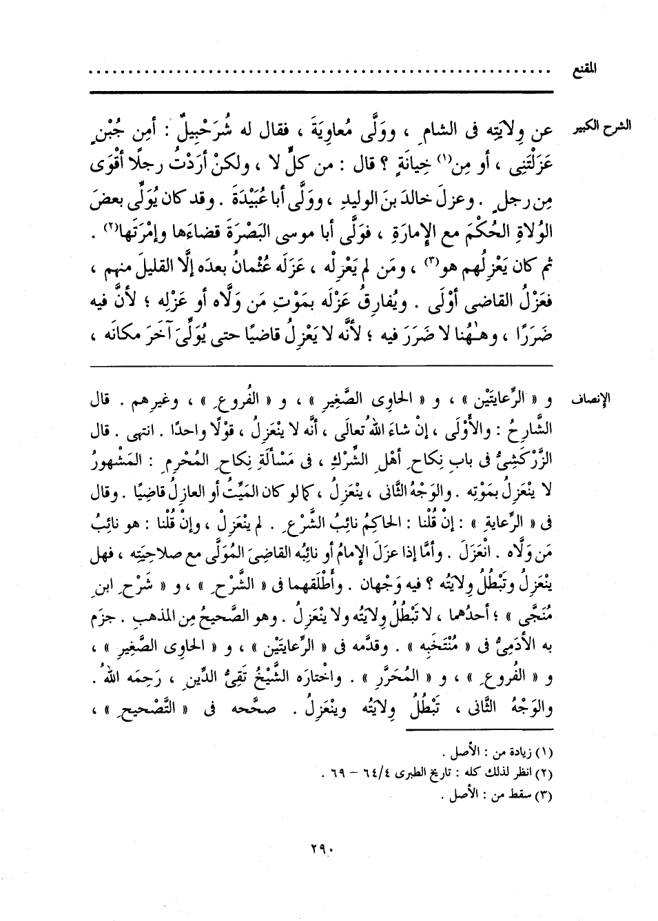و «الرِّعايتَين»، و «الحاوي الصَّغِيرِ»، و «الفُروعِ»، وغيرِهم. قال الشَّارِحُ: والأولَى، إنْ شاءَ اللهُ تعالى، أنَّه لا ينْعَزِلُ، قوْلًا واحدًا. انتهى. قال الزَّرْكَشِيُّ في بابِ نِكاحِ أهْلِ الشِّرْكِ، في مَسْألَةِ نِكاحِ المُحْرِمِ: المَشْهورُ لا ينْعَزِلُ بمَوْتِه. والوَجْهُ الثَّاني، ينْعَزِلُ، كما لو كان المَيِّتُ أو العازِلُ قاضِيًا. وقال في «الرِّعايةِ»: إنْ قُلْنا: الحاكِمُ نائِبُ الشَّرْعِ. لم ينْعَزِلْ، وإنْ قُلْنا: هو نائِبُ مَن وَلَّاه. انْعَزَلَ. وأمَّا إذا عزَلَ الإِمامُ أو نائِبُه القاضِي المُوَلَّى مع صلاحِيَته، فهل ينْعَزِلُ وتَبْطُلُ ولايَتُه؟ فيه وَجْهان. وأطْلَقهما في «الشَّرْحِ»، و «شَرْحِ ابنِ مُنَجَّى»؛ أحدُهما، لا تَبْطُلُ ولايتُه ولا ينْعَزِلُ. وهو الصَّحيحُ مِن المذهبِ. جزَم به الأدَمِيُّ في «مُنْتَخَبِه». وقدَّمه في «الرِّعايتَين»، و «الحاوي الصَّغِيرِ»، و «الفُروعِ»، و «المُحَرَّرِ». واخْتارَه الشَّيخُ تَقِيُّ الدِّينِ، رَحِمَه اللهُ. والوَجْهُ الثَّاني، تَبْطُلُ ولايتُه وينْعَزِلُ. صحَّحه في «التَّصْحيحِ»،