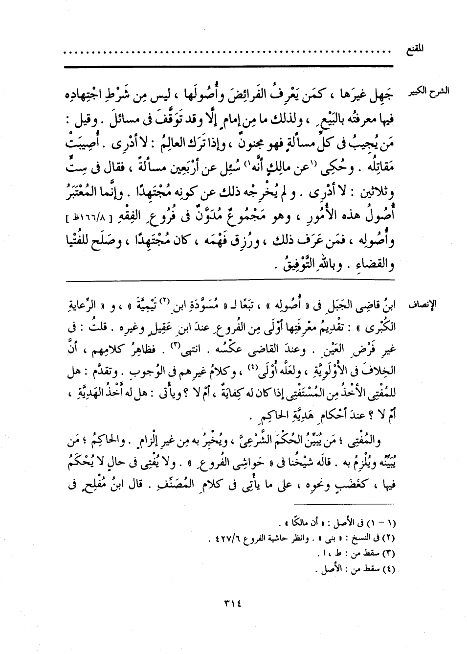 ابنُ قاضِي الجَبَلِ في «أُصُولِه»، تبَعًا لـ «مُسَوَّدَةِ ابنِ (¬1) تَيمِيَّةَ»، و «الرِّعايةِ الكُبْرى»: تقْدِيمُ معْرِفَتِها أوْلَى مِن الفُروعِ عندَ ابنِ عَقِيلٍ وغيرِه. قلتُ: في غيرِ فَرْضِ العَينِ. وعندَ القاضي عكْسُه. انتهى (¬2). فظاهِرُ كلامِهم، أنَّ الخِلافَ في الأوْلَويَّةِ، ولعَلَّه أولَى (¬3)، وكلامُ غيرِهم في الوُجوبِ. وتقدَّم: هل للمُفْتِي الأخْذُ مِن المُسْتَفْتِي إذا كان له كِفايَة، أمْ لا؟ ويأْتي: هل له أَخْذُ الهَدِيَّةِ، أمْ لا؟ عندَ أحْكام هَدِيَّةِ الحاكِمِ.