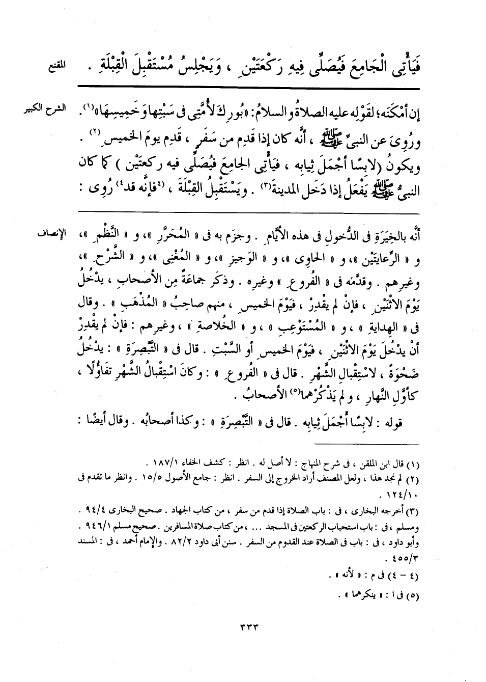 فَيَأتِي الْجَامِعَ فَيُصَلِّي فِيهِ رَكْعَتَينِ، وَيَجْلِسُ مُسْتَقْبِلَ الْقِبْلَةِ.