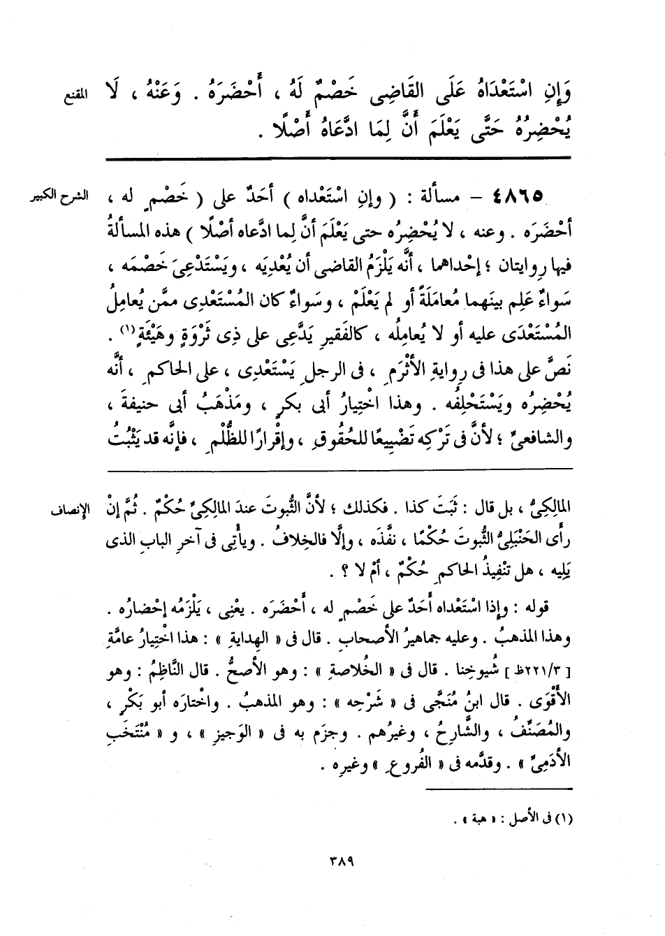 قوله: وإِذا اسْتَعْداه أَحَدٌ على خَصْمٍ له، أَحْضَرَه. يعْنِي، يَلْزَمُه إحْضارُه. وهذا المذهبُ. وعليه جماهيرُ الأصحابِ. قال في «الهِدايةِ»: هذا اخْتِيارُ عامَّةِ شُيوخِنا. قال في «الخُلاصةِ»: وهو الأصحُّ. قال النَّاظِمُ: وهو الأَقْوَى. قال ابنُ مُنَجَّى في «شَرْحِه»: وهو المذهبُ. واخْتارَه أبو بَكْرٍ، والمُصَنِّفُ، والشَّارِحُ، وغيرُهم. وجزَم به في «الوَجيزِ»، و «مُنْتَخَبِ الأدَمِيِّ». وقدَّمه في «الفُروعِ» وغيرِه.