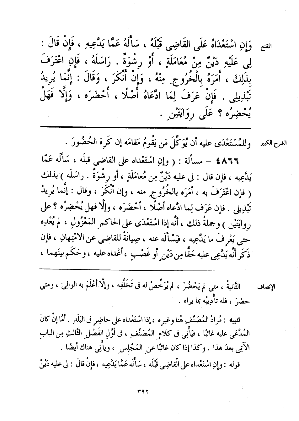 تنبيه: مُرادُ المُصَنِّفِ هُنا وغيرِه، إذا اسْتَعْداه على حاضِرٍ في البَلَدِ. أمَّا إنْ كانَ المُدَّعَى عليه غائبًا، فيَأْتِي في كلامِ المُصَنِّفِ، في أوَّلِ الفَصْلِ الثَّالثِ مِن البابِ الآتِي بعدَ هذا. وكذا إذا كان غائبًا عنِ المَجْلِسِ، ويأْتِي هناك أيضًا.