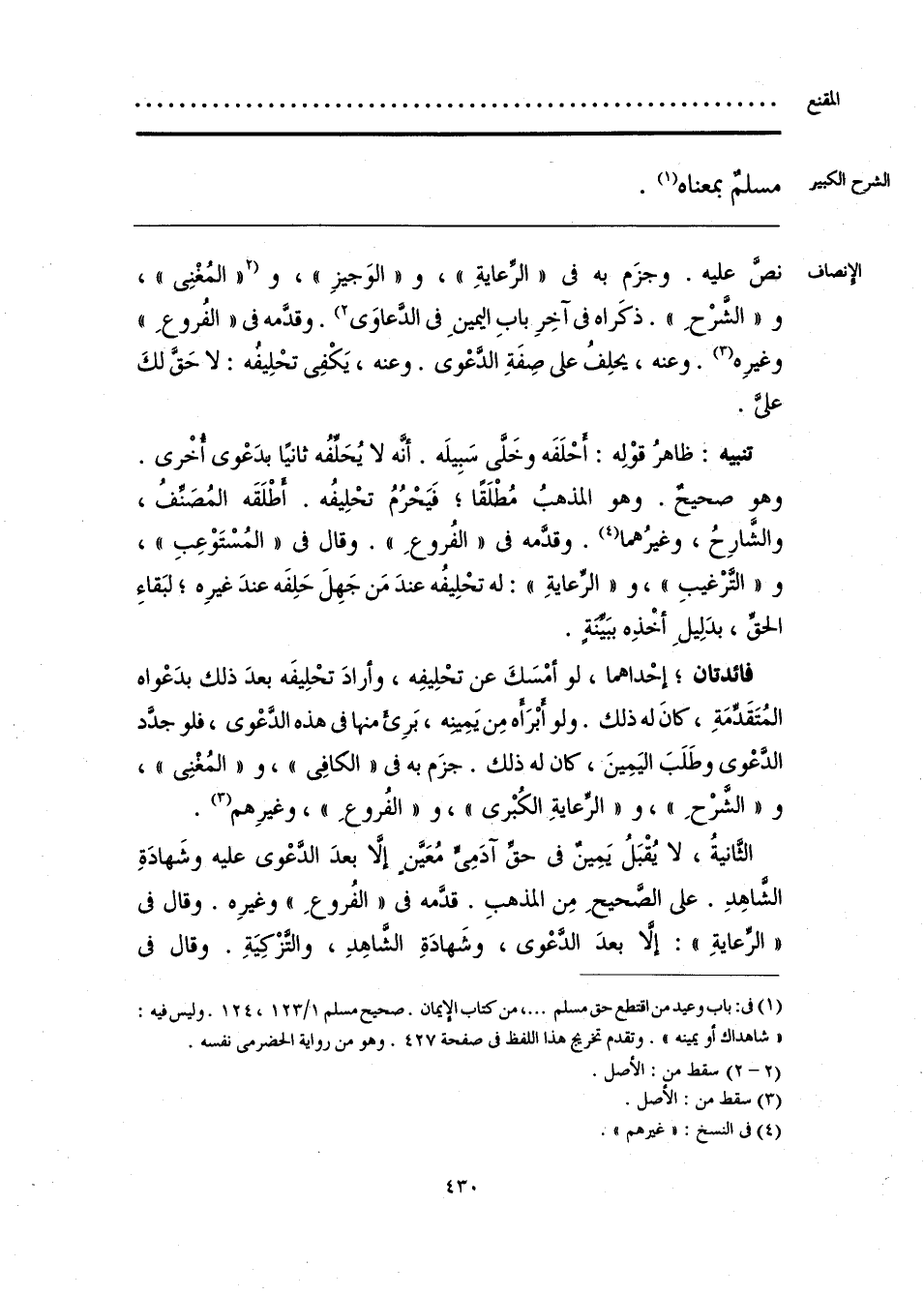 تنبيه: ظاهرُ قوْلِه: أَحْلَفَه وخَلَّى سَبِيلَه. أنَّه لا يُحَلِّفُه ثانيًا بدَعْوى أُخْرى. وهو صحيحٌ. وهو المذهبُ مُطْلَقًا؛ فَيَحْرُمُ تحْلِيفُه. أَطْلَقَه المُصَنِّفُ، والشَّارِحُ، وغيرُهما (¬3). وقدَّمه في «الفُروعِ». وقال في «المُسْتَوْعِبِ»، و «التَّرْغيبِ»، و «الرِّعايةِ»: له تحْلِيفُه عندَ مَن جَهِلَ حَلِفَه عندَ غيرِه؛ لبَقاءِ الحقِّ، بدَلِيلِ أخْذِه ببَيِّنَةٍ.