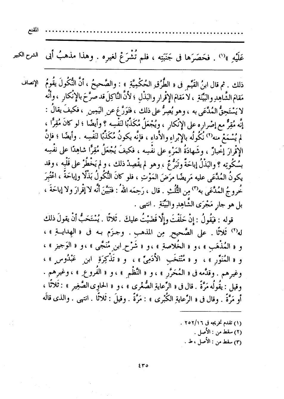 قوله: فيَقُولُ: إنْ حَلَفْتَ وإِلَّا قَضَيتُ عليكَ. ثَلاثًا. يُسْتَحَبُّ أنْ يقولَ ذلك له (2) ثَلاثًا. على الصَّحيحِ مِن المذهبِ. وجزَم به في «الهِدايةِ»، و «المُذْهَبِ»، و «الخُلاصةِ»، و «شَرْحِ ابنِ مُنَجَّى»، و «الوَجيزِ»، و «المُنَوِّرِ»، و «مُنْتَخَبِ الأدَمِيِّ»، و «تَذْكِرَةِ ابنِ عَبْدُوسٍ»، وغيرِهم. وقدَّمه في «المُحَرَّرِ»، و «النَّظْمِ»، و «الفُروعِ»، وغيرِهم. وقيل: يقُولُه مَرَّةً. قال في «الرِّعايةِ الصُّغْرى»، و «الحاوي الصَّغِيرِ»: ثَلاثًا، أو مَرَّةً. وقال في «الرِّعايةِ الكُبْرى»: مَرَّةً. وقيلَ: ثَلاثًا. انتهى. والذي قاله