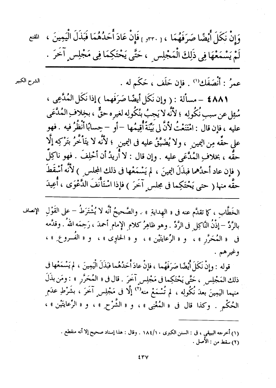 الخَطَّابِ، كما تقدَّم عنه في «الهِدايةِ». والصَّحيحُ أنَّه لا يُشْتَرَطُ -على القَوْلِ بالرَّدِّ- إذْنُ النَّاكِلِ في الرَّدِّ. وهو ظاهِرُ كلامِ الإِمامِ أحمدَ، رَحِمَه اللهُ. وقدَّمه في «المُحَرَّرِ»، و «الرِّعايتَين»، و «الحاوي»، و «الفُروعِ»، وغيرِهم.