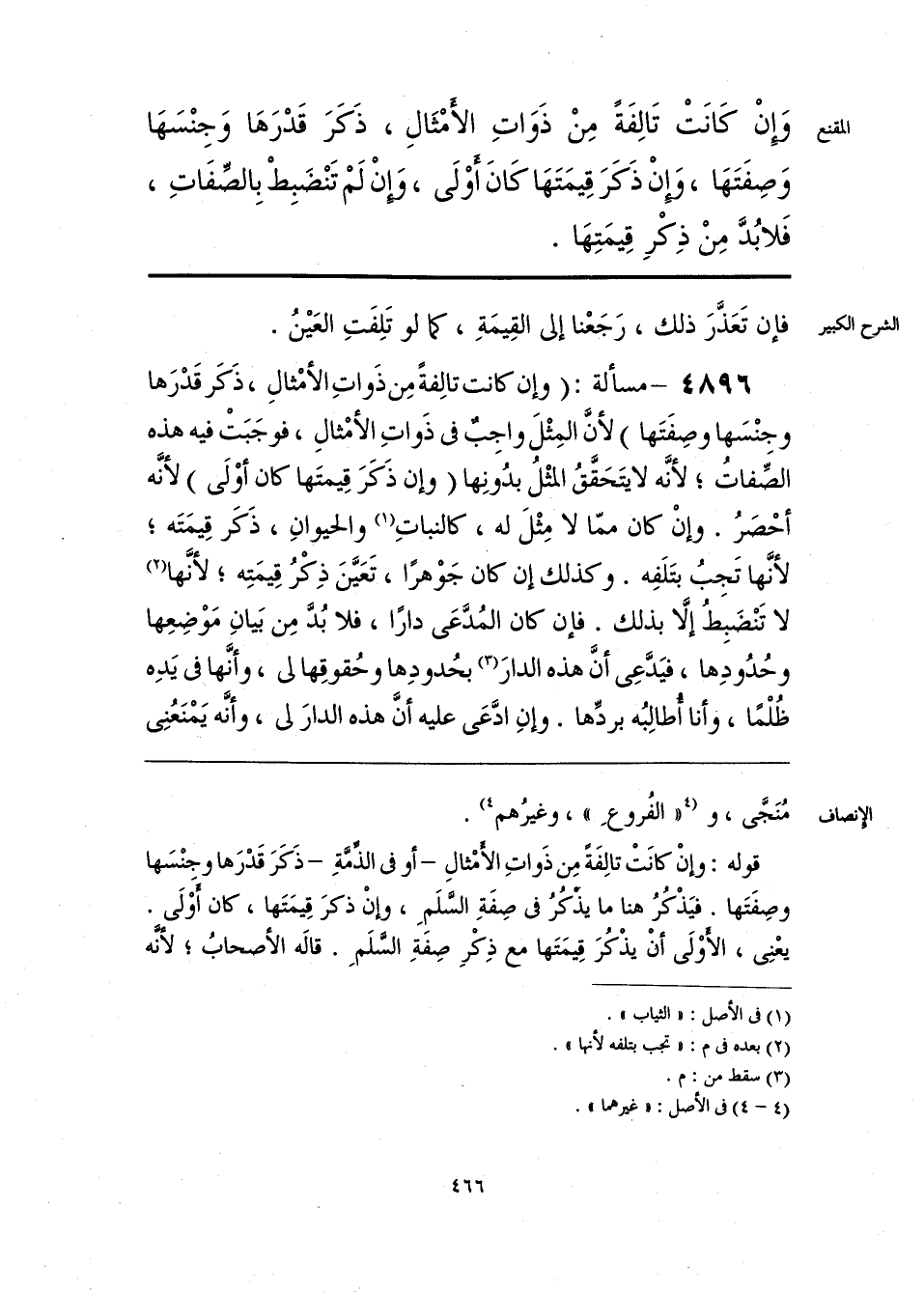 قوله: وإنْ كانَتْ تالِفَةً مِن ذَواتِ الأمْثالِ -أو في الذِّمَّةِ- ذَكَرَ قَدْرَها وجنْسَها وصِفَتَها. فيَذْكُرُ هنا ما يذكُرُ في صِفَةِ السلَمِ، وإنْ ذكرَ قِيمَتَها، كان أولَى. يعْنِي، الأوْلَى أنْ يذْكُرَ قِيمَتَها مع ذِكْرِ صِفَةِ السلَمِ. قاله الأصحابُ؛ لأنه