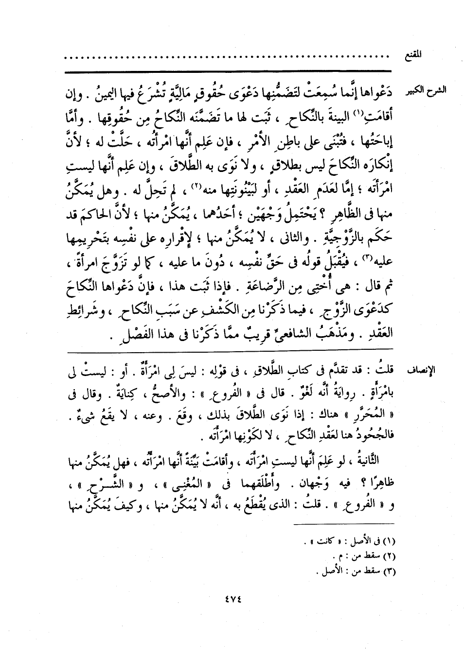 قلتُ: قد تقدَّم في كتابِ الطَّلاقِ، في قوْلِه: ليسَ لِي امْرَأة. أو: ليستْ لي بامْرَأةٍ. رِوايَةُ أنَّه لَغْوٌ. قال في «الفُروع»: والأصحُّ، كِنايَةٌ. وقال في «المُحَررِ» هناك: إذا نَوَى الطَلاقَ بذلك، وقَعَ. وعنه، لا يقَعُ شيء. فالجُحُودُ هنا لعَقْدِ النكاحِ، لا لكَوْنِها امْرَأته.