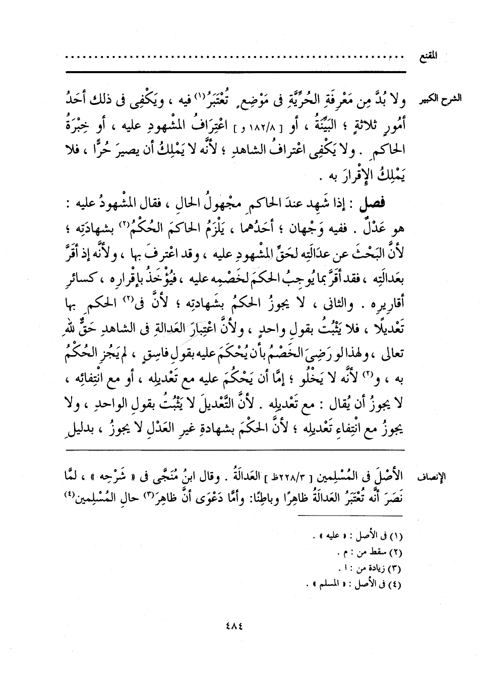 الأصْلَ في المُسْلِمين العَدالةُ. وقال ابنُ مُنَجى في «شَرْحِه»، لمَّا نَصَرَ أنَّه تُعْتَبَرُ العَدالةُ ظاهِرًا وباطِنًا: وأمَّا دَعْوَى أنَّ ظاهِرَ (¬1) حالِ المُسْلِمين (¬2)