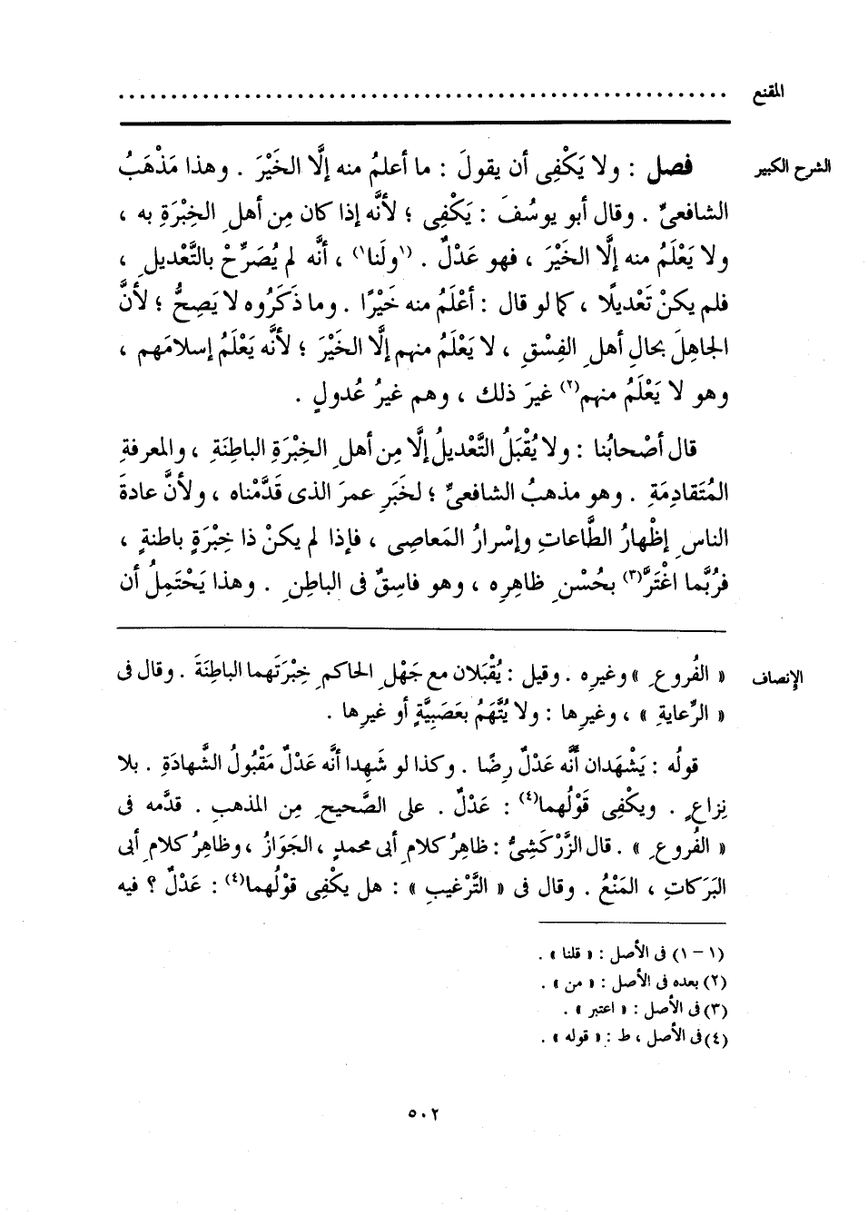 «الفُروعِ» وغيرِه. وقيل: يُقْبَلان مع جَهْلِ الحاكمِ خِبْرَتَهما الباطِنَةَ. وقال فى «الرِّعايةِ»، وغيرِها: ولا يُتَّهَمُ بعَصَبِيَّةٍ أو غيرِها.