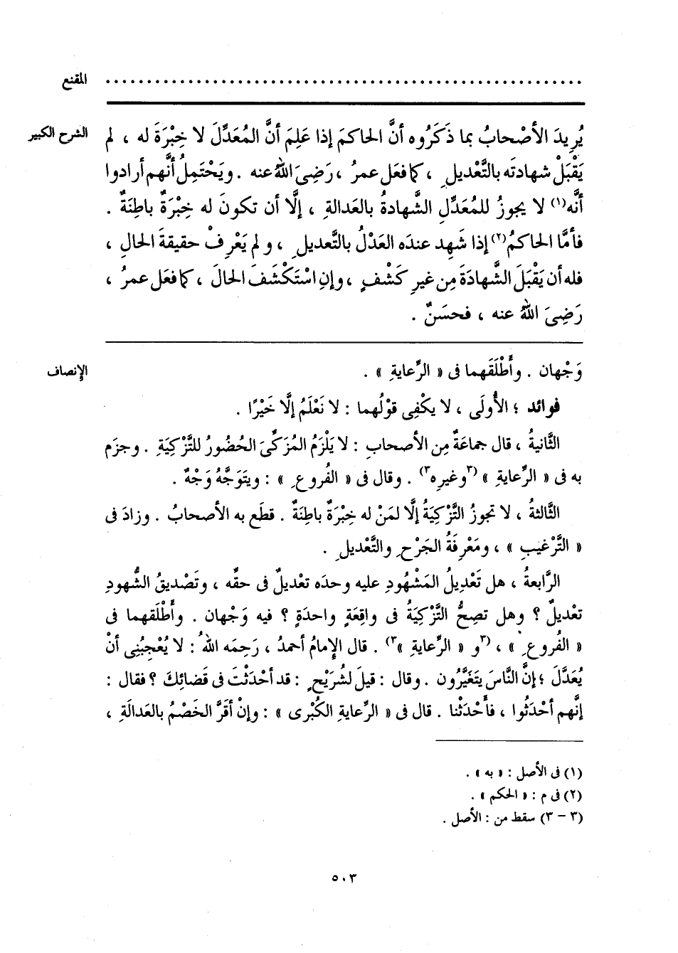 الرَّابعةُ، هل تَعْدِيلُ المَشْهُودِ عليه وحدَه تعْديلٌ فى حقِّه، وتَصْديقُ الشُّهودِ تعْديلٌ؟ وهل تصِحُّ التَّزْكِيَةُ فى واقِعَةٍ واحدَةٍ؟ فيه وَجْهان. وأَطْلَقهما فى «الفُروعِ»، [و «الرِّعايةِ»] (3). قال الإمامُ أحمدُ، رَحِمَه اللهُ: لا يُعْجِبُنِى أنْ يُعَدَّلَ؛ إنَّ النَّاسَ يتَغَيَّرُون. وقال: قيلَ لشُرَيْحٍ: قد أحْدَثْتَ فى قَضائِكَ؟ فقال: إنَّهم أحْدَثُوا، فأَحْدَثْنا. قال فى «الرِّعايةِ الكُبْري»: وإنْ أقَرَّ الخَصْمُ بالعَدالَةِ،