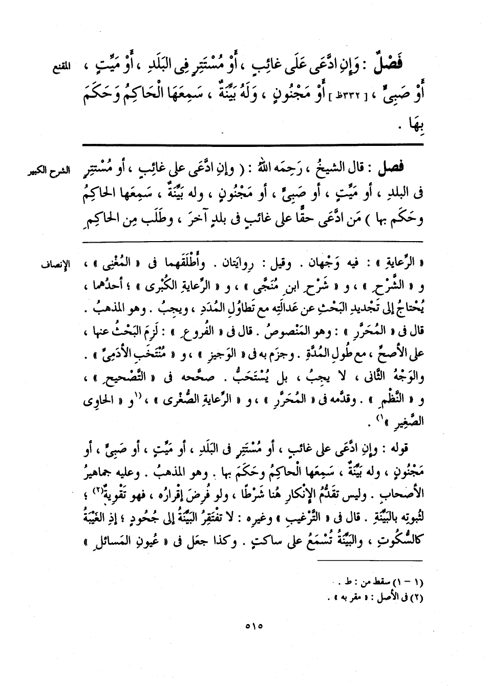 «الرِّعايةِ»: فيه وَجْهان. وقيل: رِوايَتان. وأَطْلَقَهما فى «المُغْنِى»، و «الشَّرْحِ»، و «شَرْحِ ابنِ مُنَجَّى»، و «الرِّعايةِ الكُبْري»؛ أحدُهما،