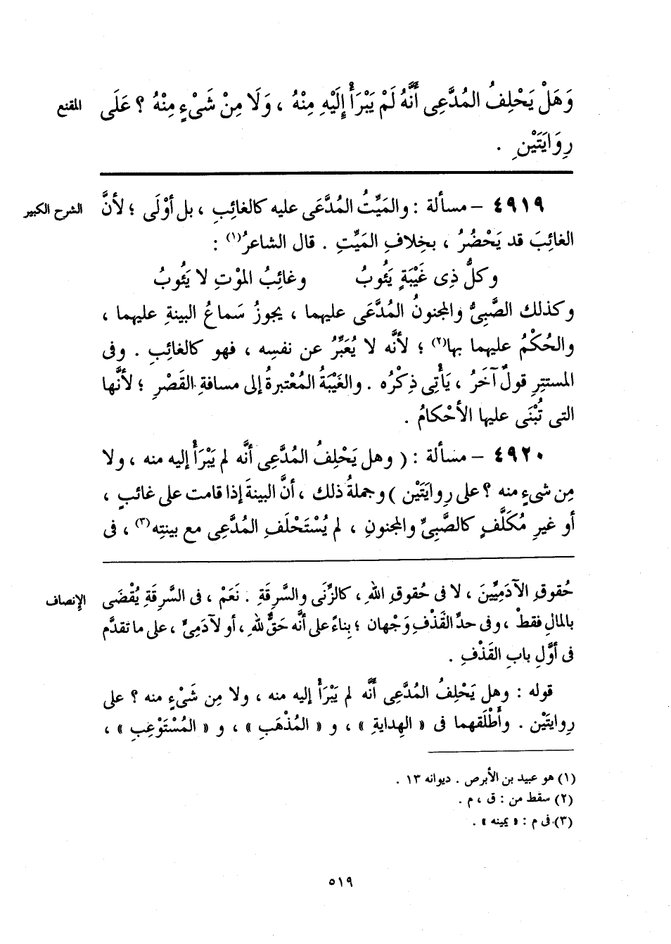 قوله: وهل يَحْلِفُ المُدَّعِى أَنَّه لم يَبْرَأْ إليه منه، ولا مِن شَىْءٍ منه؟ على رِوايتَيْن. وأَطْلَقهما فى «الهِدايةِ»، و «المُذْهَبِ»، و «المُسْتَوْعِبِ»،