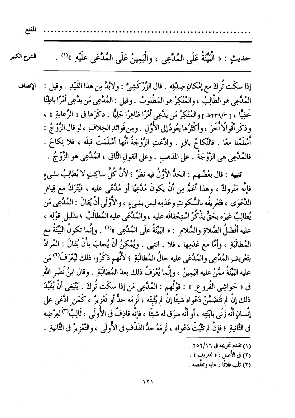 فى «حَواشِى الفُروعِ»: قوْلُهم: المُدَّعِى مَن إذا سكَت تُرِكَ. يَنْبَغِى أنْ يُقَيَّدَ ذلك إنْ لم تَتَضَمنْ دَعْواه شيئًا إنْ لم يُثْبتْه، لَزمَه حدٌّ أو تَعْزيزٌ، كَمَنِ ادَّعَى على إنْسانٍ أنَّه زَنَى بابْنَتِه، أو أنَّه سرَق له شيَئًا، فإنَّه قاذِفٌ فى الأُولَى، ثَالِبٌ (¬3) لعِرْضِه فى الثَّانيةِ؛ فإنْ لم تثْبُتْ دَعْواه، لَزِمَهُ حدُّ القَذْفِ فى الأُولَى، والتَّعْزِيرُ فى الثَّانيةِ.