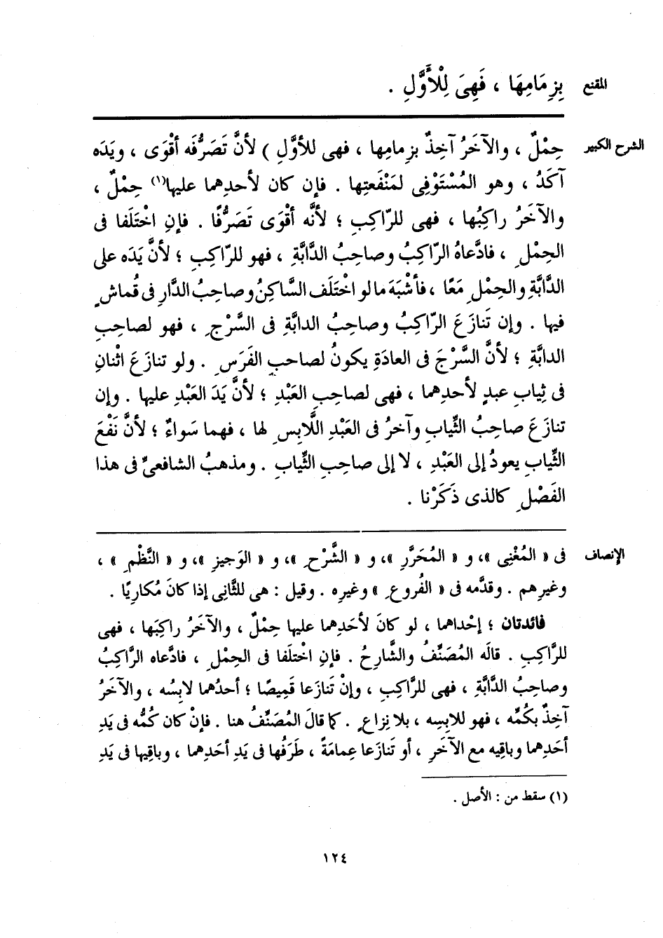 فى «المُغْنِي»، و «المُحَرَّرِ»، و «الشَّرْحِ» و «الوَجيزِ»، و «النَّظْمِ»، وغيرِهم. وقدمه في «الفُروعِ» وغيرِه. وقيل: هي للثَّانِي إذا كانَ مُكارِيًا.
