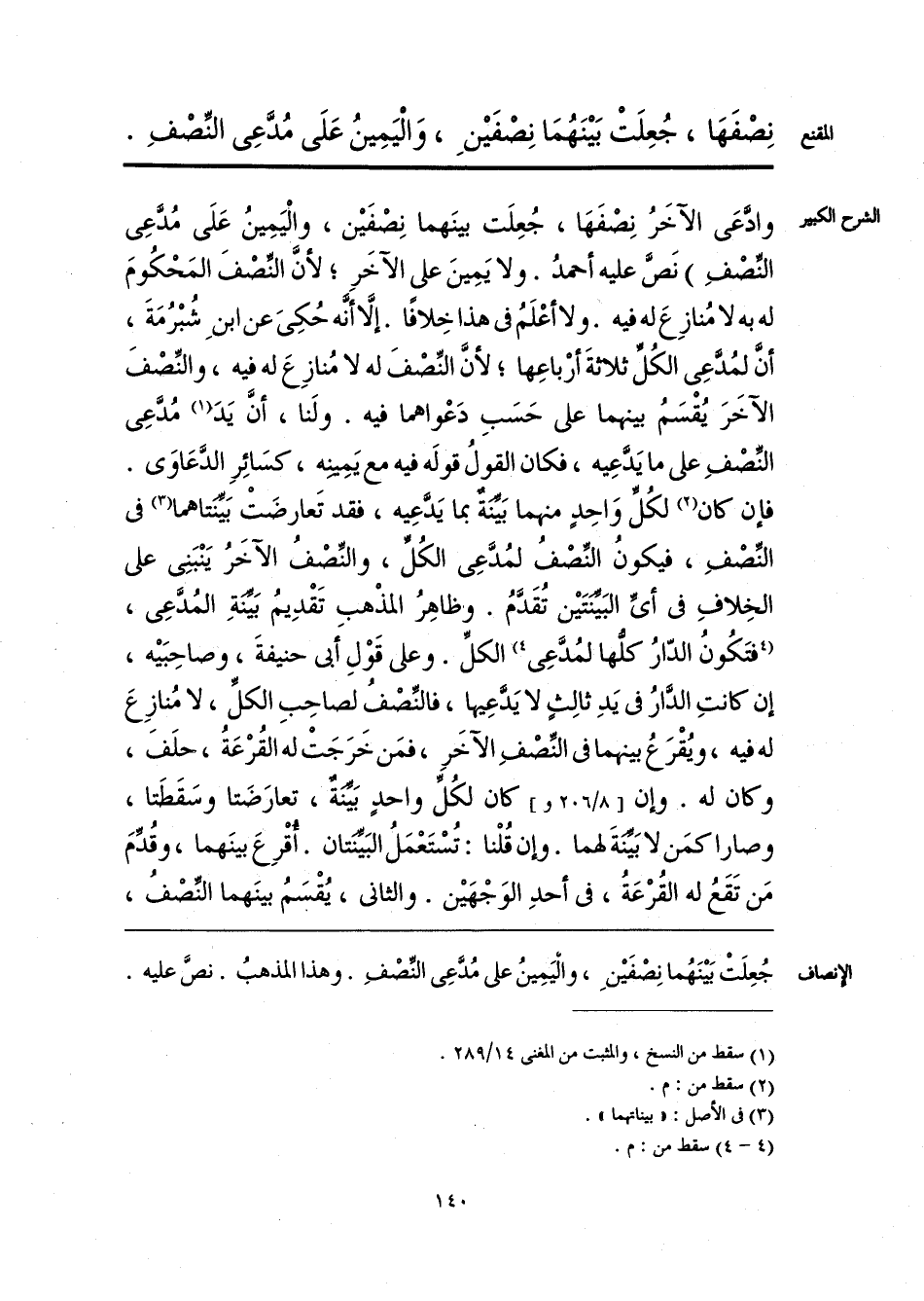 جُعِلَتْ بَيْنَهُما نِصْفَيْنِ، والْيَمِينُ على مُدَّعِى النِّصْفِ. وهذا المذهبُ. نصَّ عليه.