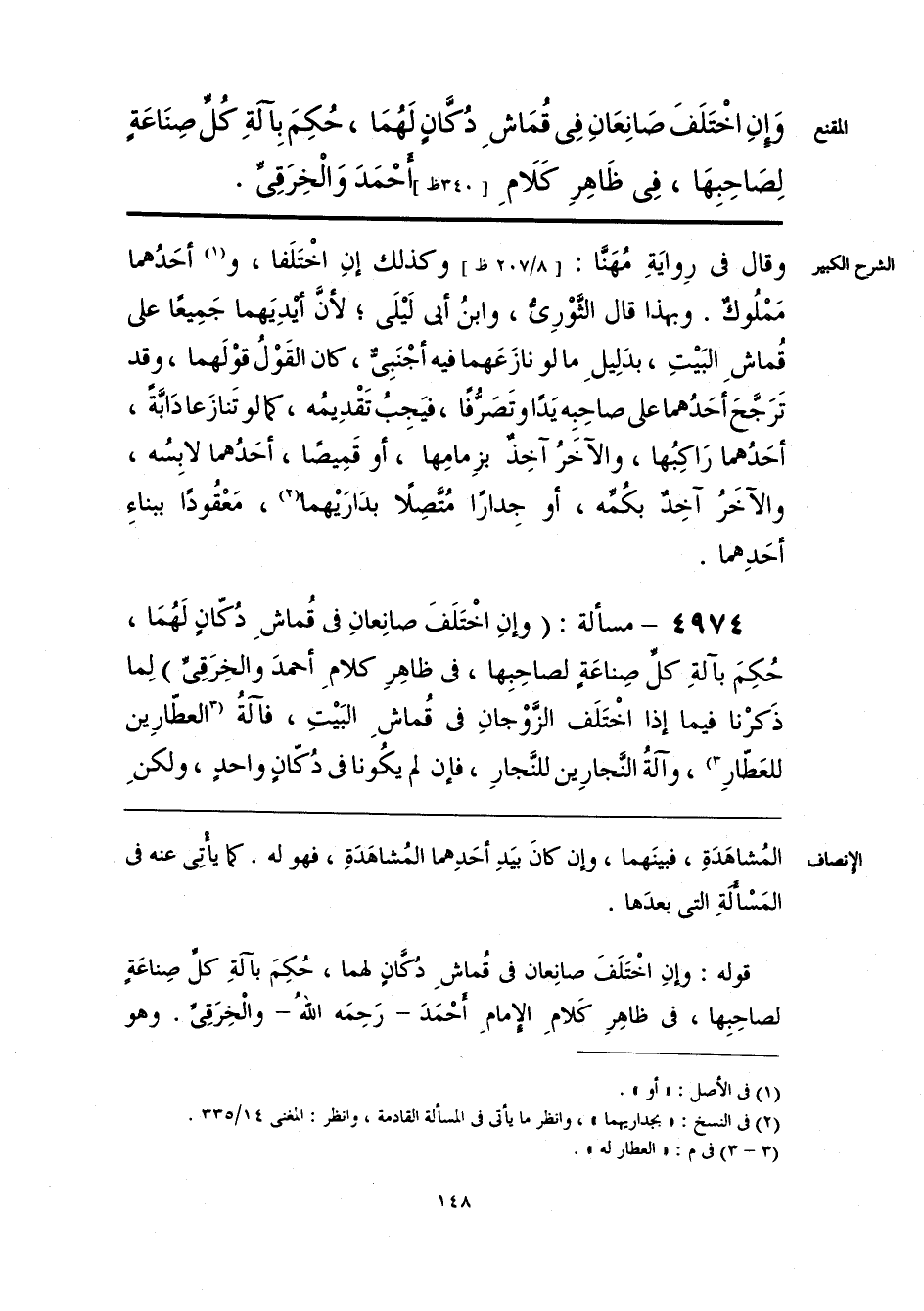 وَإِنِ اخْتَلَفَ صَانِعَانِ في قُمَاشِ دُكَّانٍ لَهُمَا، حُكِمَ بِآلةِ كُلِّ صِنَاعَةٍ لِصَاحِبِهَا، في ظَاهِرِ كَلَامِ [340 ظ] أحْمَدَ وَالْخِرَقِىِّ.
