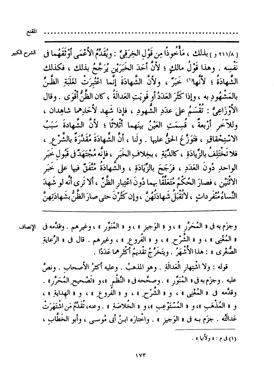 وجزَم به في «المُحَرَّرِ»، و «الوَجيزِ»، و «المُنَوِّرِ»، وغيرِهم. وقدَّمه في «المُغْنِي»، و «الشَّرْحِ»، و «الفُروعِ»، وغيرِهم. قال فى «الرِّعايةِ