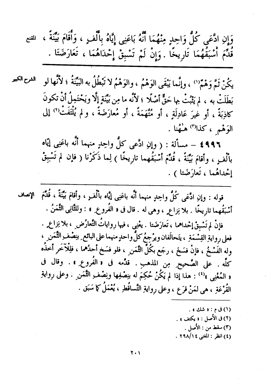وَإِنِ ادَّعَى كُلُّ وَاحِدٍ مِنْهُمَا أَنَّهُ بَاعَنِى إِيَّاهُ بِأَلْفٍ، وَأَقامَ بَيِّنَةً، قُدِّمَ أَسْبَقُهُمَا تَارِيخًا. وَإِنْ لَمْ تَسْبِقْ إِحْدَاهُمَا، تَعَارَضَتَا.