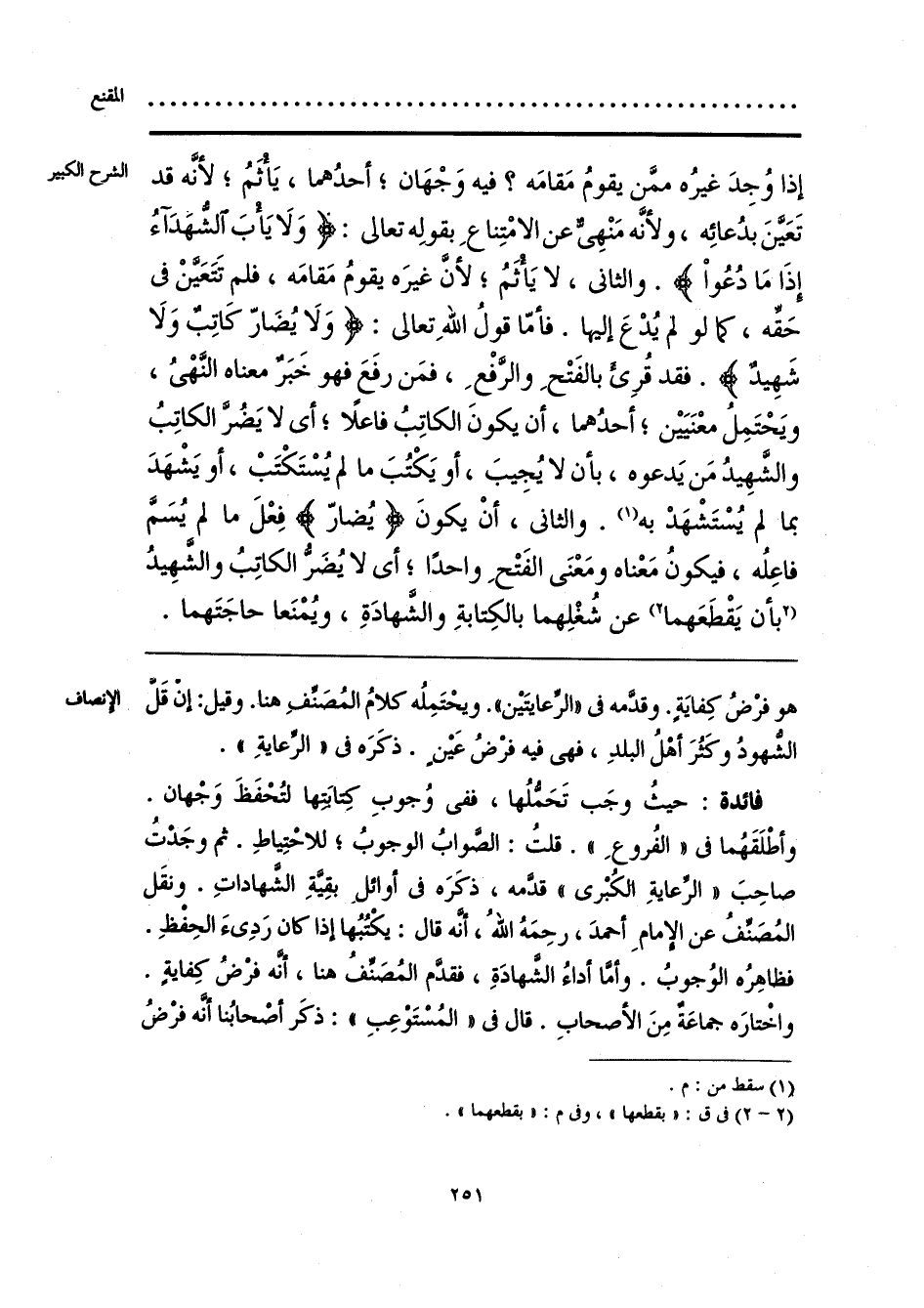 فائدة: حيثُ وجَب تَحَمُّلُها، ففى وُجوبِ كتابتها لتُخفَظَ وَجْهان. وأطْلَقَهُما فى «الفُروعِ». قلتُ: الصَّوابُ الوجوبُ؛ للاحْتِياطِ. ثم وجَدتُ صاحِبَ «الرِّعايةِ الكُبْرى» قدَّمه، ذكَرَه فى أوائل بقِيةِ الشَّهاداتِ. في نقَل المُصَنِّفُ عن الإمامِ أحمدَ، رحِمَهُ اللهُ، إنّه قال: يكْتُبُها إذا كان رَدِئَ الحِفظِ. فظاهِرُه الوُجوب. وأمَّا أداءُ الشَّهادَةِ، فقدّم المُصَنِّفُ هنا، إنّه فرضُ كفايةٍ. واخْتارَه جماعَةٌ مِنَ الأصحابِ. قال فى «المُسْتوعِب»: ذكَر أصْحابُنا أنَّه فرْضُ