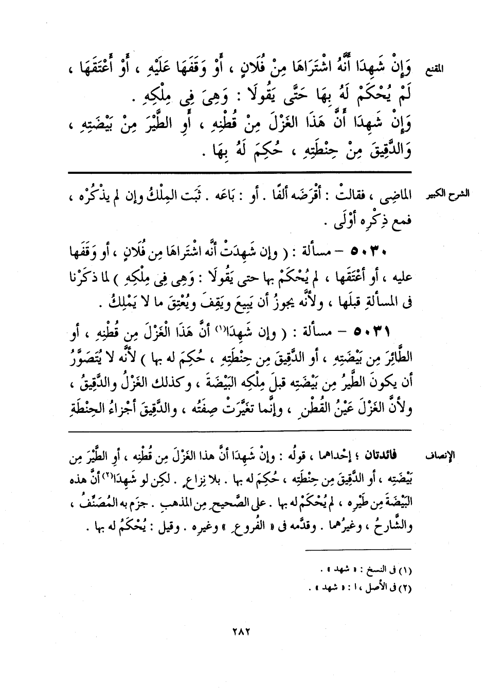 فائدتان؛ إحداهما، قولُه: وإنْ شَهِدَا أنَّ هذا الغزْلَ مِن قُطنه، أوِ الطَّيْرَ مِن بَيْضَتِه، أو الدَّقِيقَ مِن حِنْطتَه، حُكِمَ له بها. بلا نِزاعٍ. لكِن لو شَهِدَا (¬1) أنَّ هذه البَيْضَةَ مِن طَيْرِه، لم يُحْكَمْ له بها. على الصَّحيحِ مِن المذهبِ. جزَم به المُصَنِّفُ، والشَّارحُ، وغيرُهما. وقدَّمه فى «الفُروعِ» وغيرِه. وقيل: يُحكَمُ له بها.