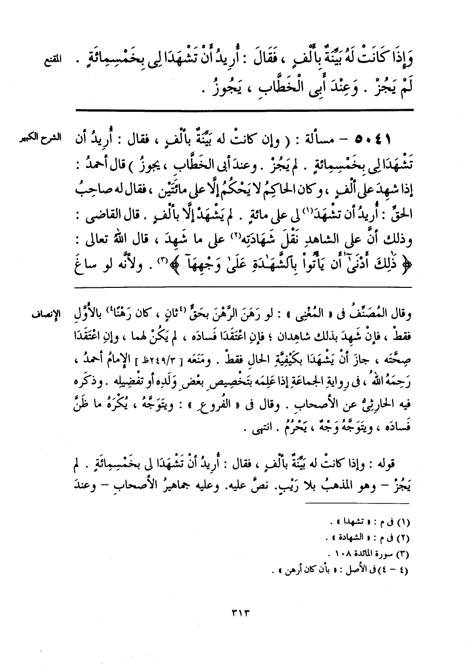 قوله: وإذا كانتْ له بَيِّنَة بألْفٍ، فقال: أُرِيدُ أنْ تَشْهَدَا لى بخَمْسِمِائَةٍ. لم يَجُزْ - وهو المذهبُ بلا رَيْبٍ. نصَّ عليه. وعليه جماهيرُ الأصحابِ - وعندَ