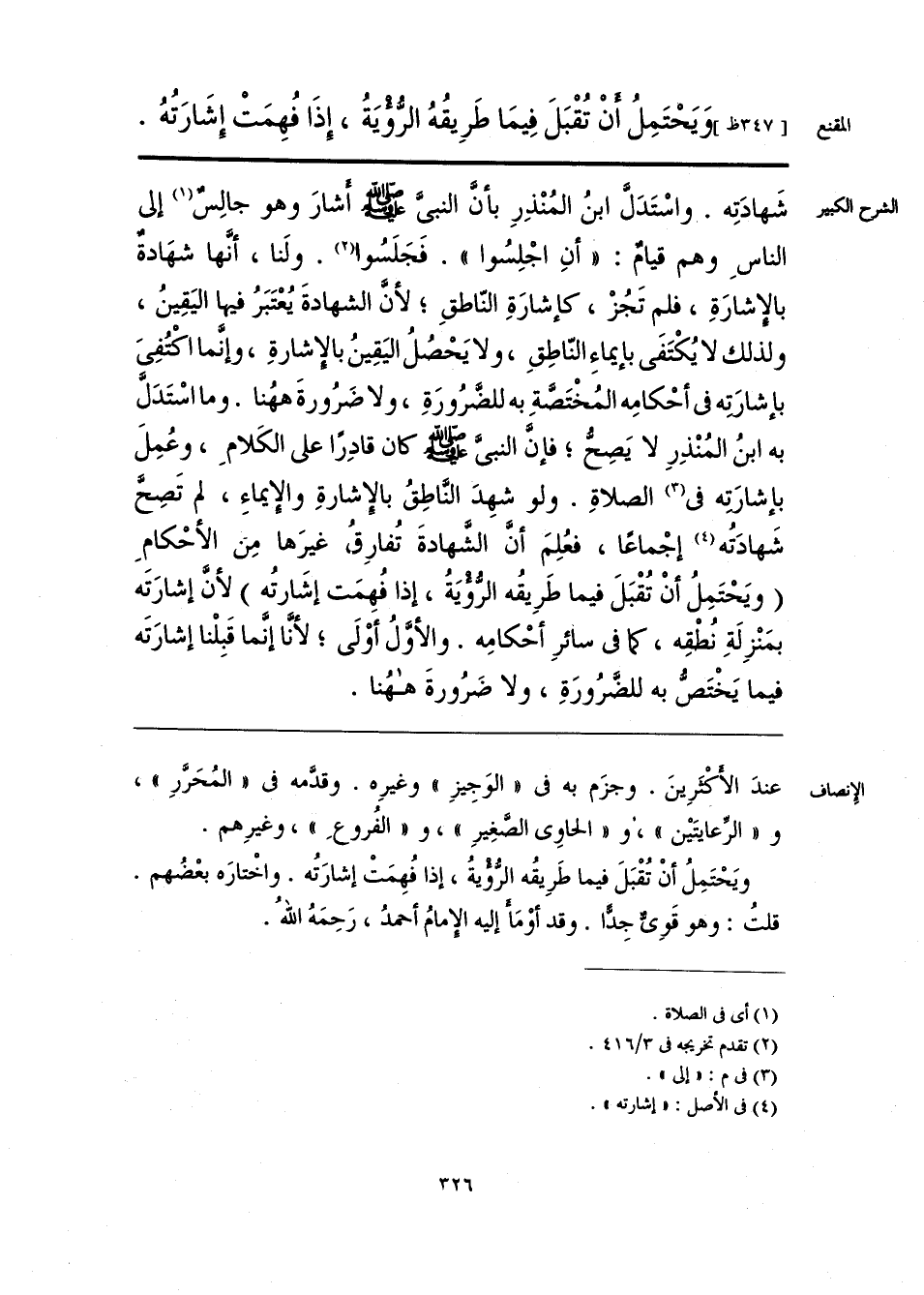ويَحْتَمِلُ أنْ تُقْبَلَ فيما طَرِيقُه الرُّؤْيةُ، إذا فُهِمَتْ إشارَتُه. واخْتارَه بعْضُهم. قلتُ: وهو قَوِىٌّ جِدًّا. وقد أوْمَأَ إليه الإمامُ أحمدُ، رَحِمَهُ اللهُ.