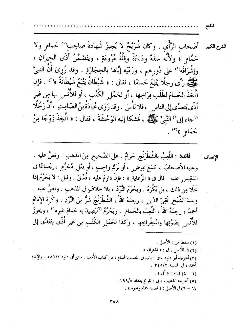 فائدة: اللَّعِبُ بالشِّطْرَنْجِ حَرامٌ. على الصحيحِ مِنَ المذهبِ. ونصَّ عليه.