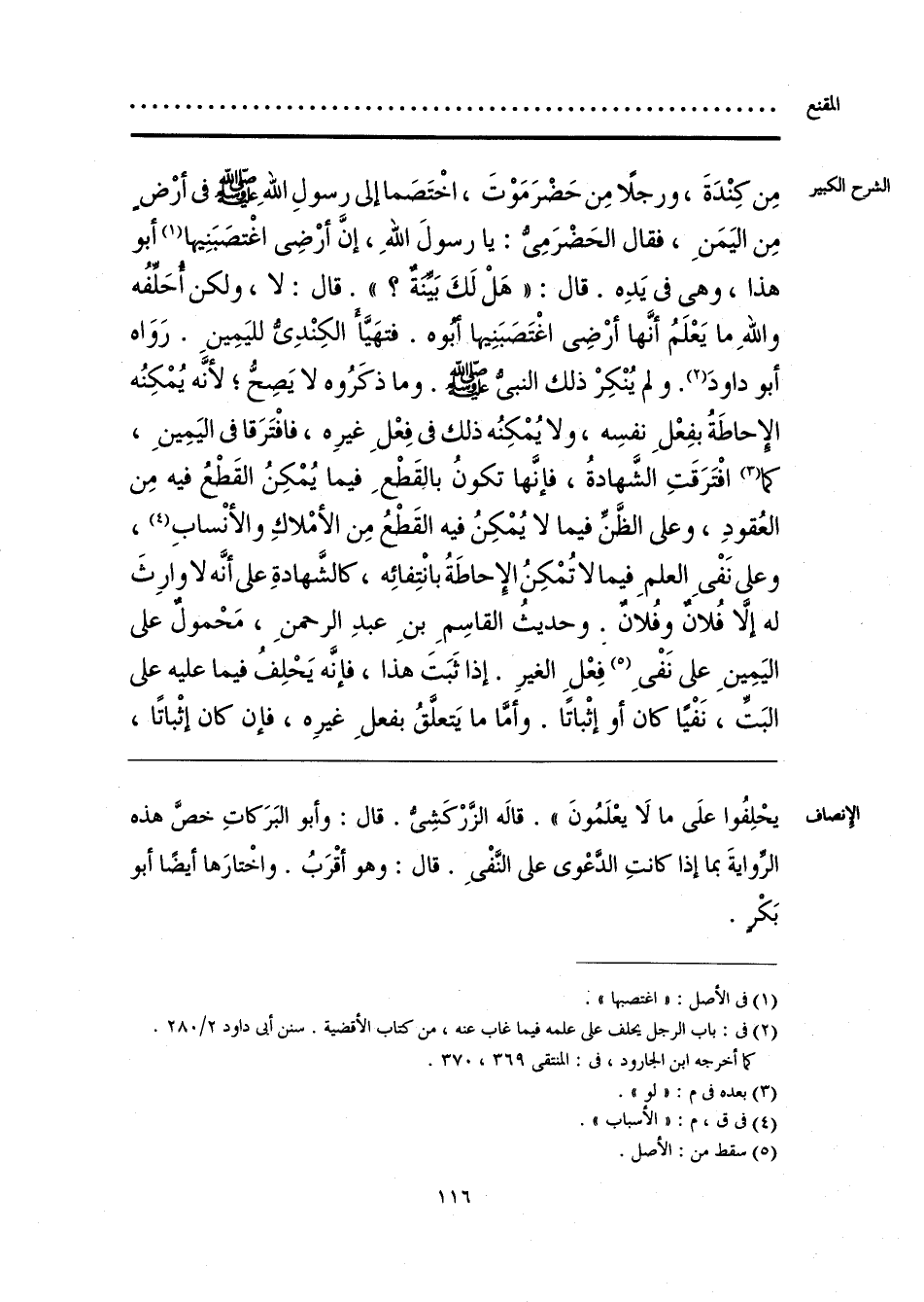 يحْلِفُوا علَى ما لَا يعْلَمُونَ». قالَه الزَّرْكَشِىُّ. قال: وأبو البَرَكاتِ خصَّ هذه الرِّوايةَ بما إذا كانتِ الدَّعْوى على النَّفْى. قال: وهو أقْرَبُ. واخْتارَها أيضًا أبو بَكْرٍ.