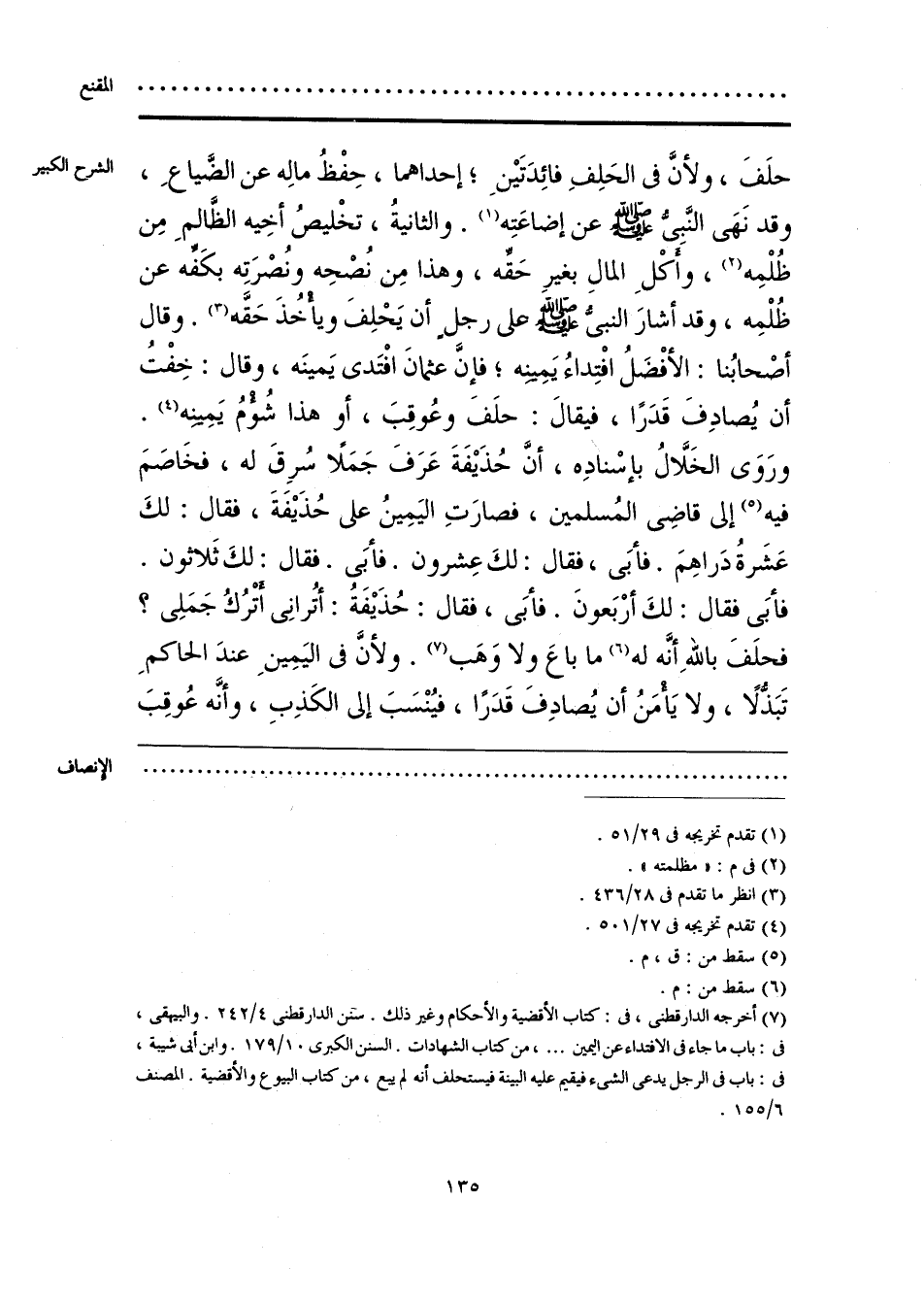 (¬7) أخرجه الدارقطنى، في: كتاب الأقضية والأحكام وغير ذلك. سنن الدارقطنى 4/ 242. والبيهقى، في: باب ما جاء في الافتداء عن اليمين. . .، من كتاب الشهادات. السنن الكبرى 10/ 179. وابن أبى شيبة، في: باب في الرجل يدعى الشئ فيقيم عليه البينة فيستحلف أنه لم بيع، من كتاب البيوع والأقضية. المصنف 6/ 155.