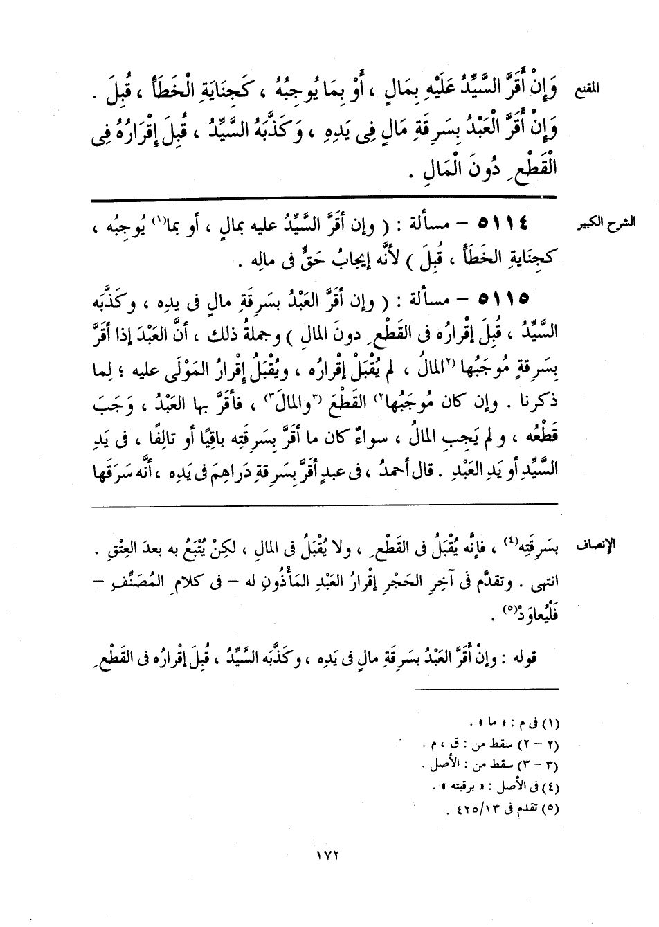 قوله: وإنْ أَقَرَّ العَبْدُ بسَرِقَةِ مالٍ فى يَدِه، وكَذَّبَه السَّيِّدُ، قُبِلَ إقْرارُه فى القَطْعِ