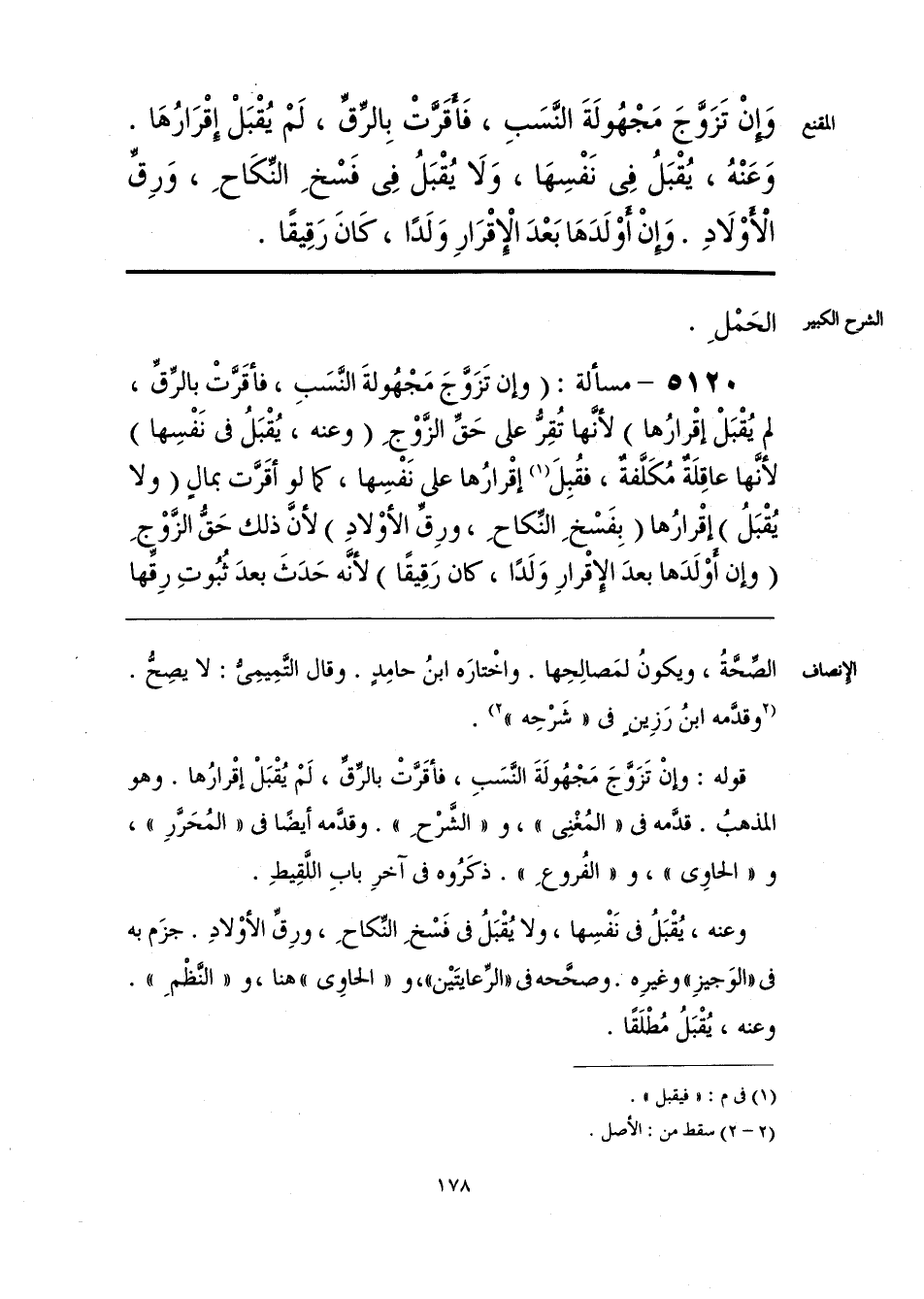قوله: وإنْ تَزَوَّجَ مَجْهُولَةَ النَّسَبِ، فأقَرَّتْ بالرِّقِّ، لَمْ يُقْبَلْ إقْرارُها. وهو المذهبُ. قدَّمه فى «المُغْنِى»، و «الشَّرْحِ». وقدَّمه أيضًا فى «المُحَرَّرِ»، و «الحاوِى»، و «الفُروعِ». ذكَرُوه فى آخرِ بابِ اللَّقِيطِ.