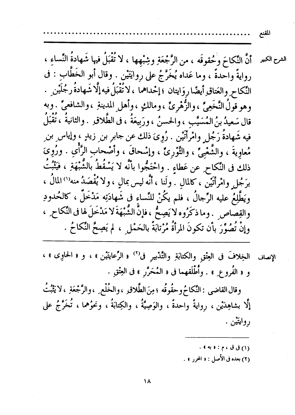 وقال القاضى: النِّكاحُ وحقُوقُه؛ مِنَ الطلاق، والخُلْعِ، والرجْعَةِ، لا يَثْبُتُ إلا بشاهِدَيْن، رِوايةً واحدةً، والوَصِيَّةُ، والكِتابَةُ، ونحوُهما، تُخَرَّجُ على رِوايتَيْن.