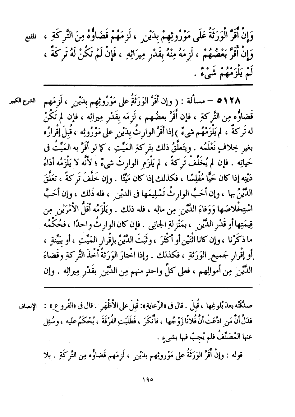 قوله: وإنْ أقرَّ الوَرَثَةُ على مَوْروثِهم بدَيْنٍ، لَزِمَهم قَضاؤُه مِن التَّرِكَةِ. بلا